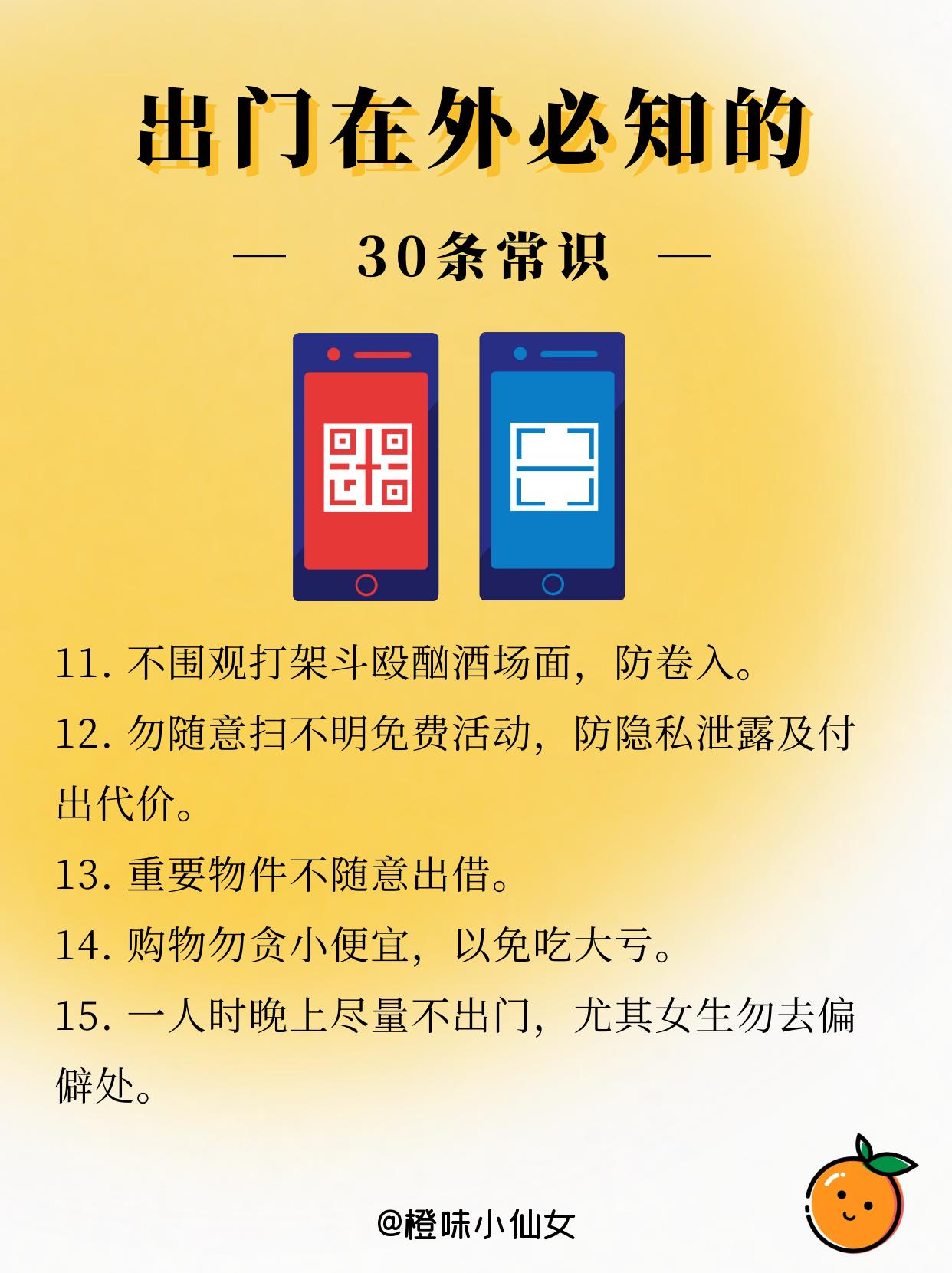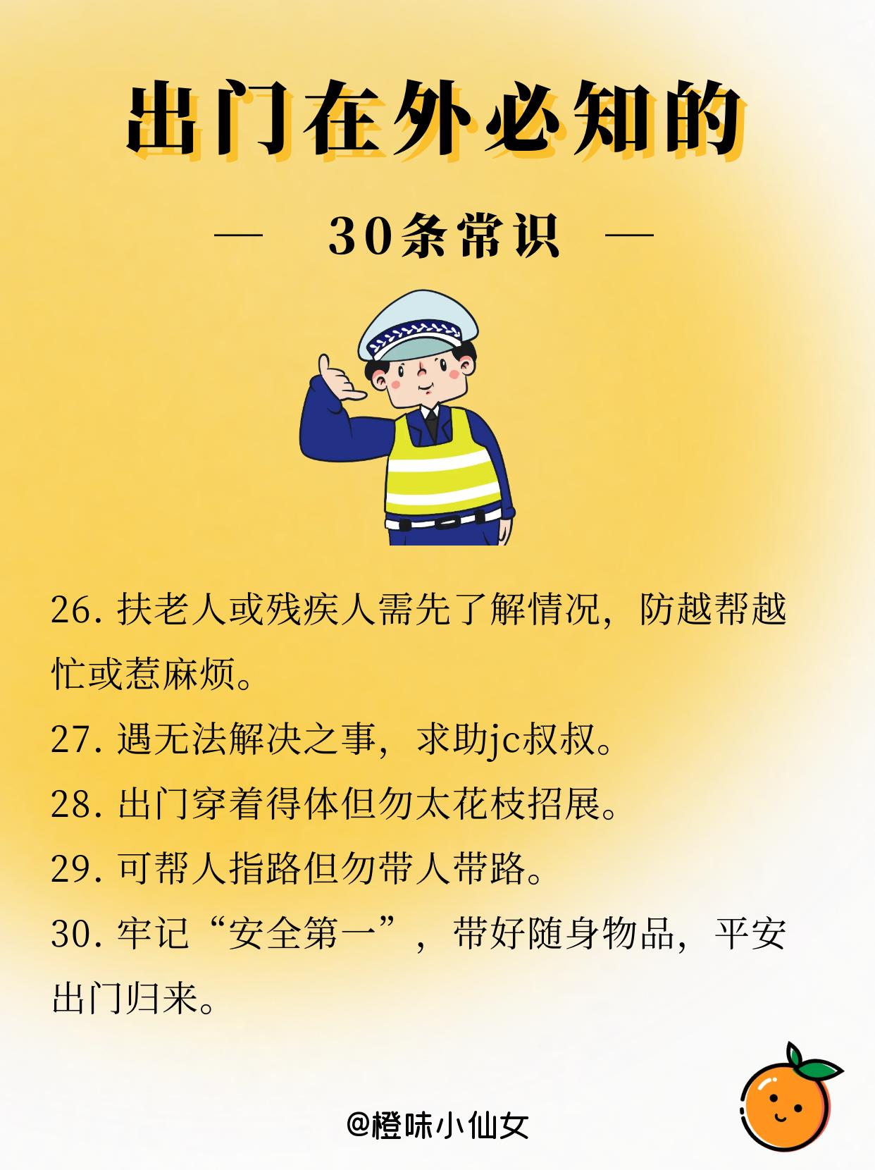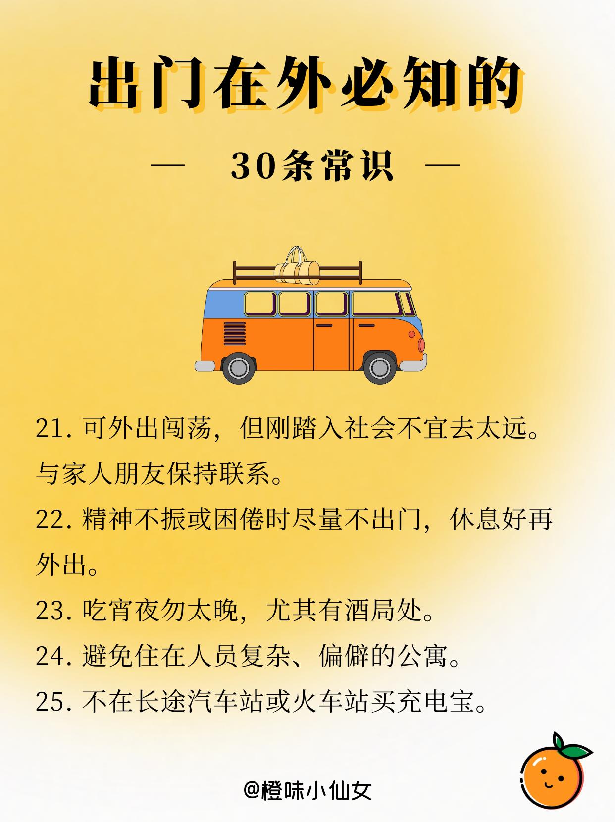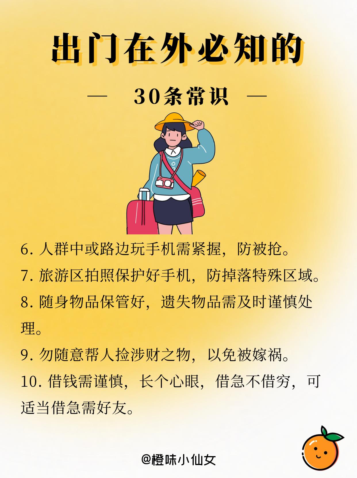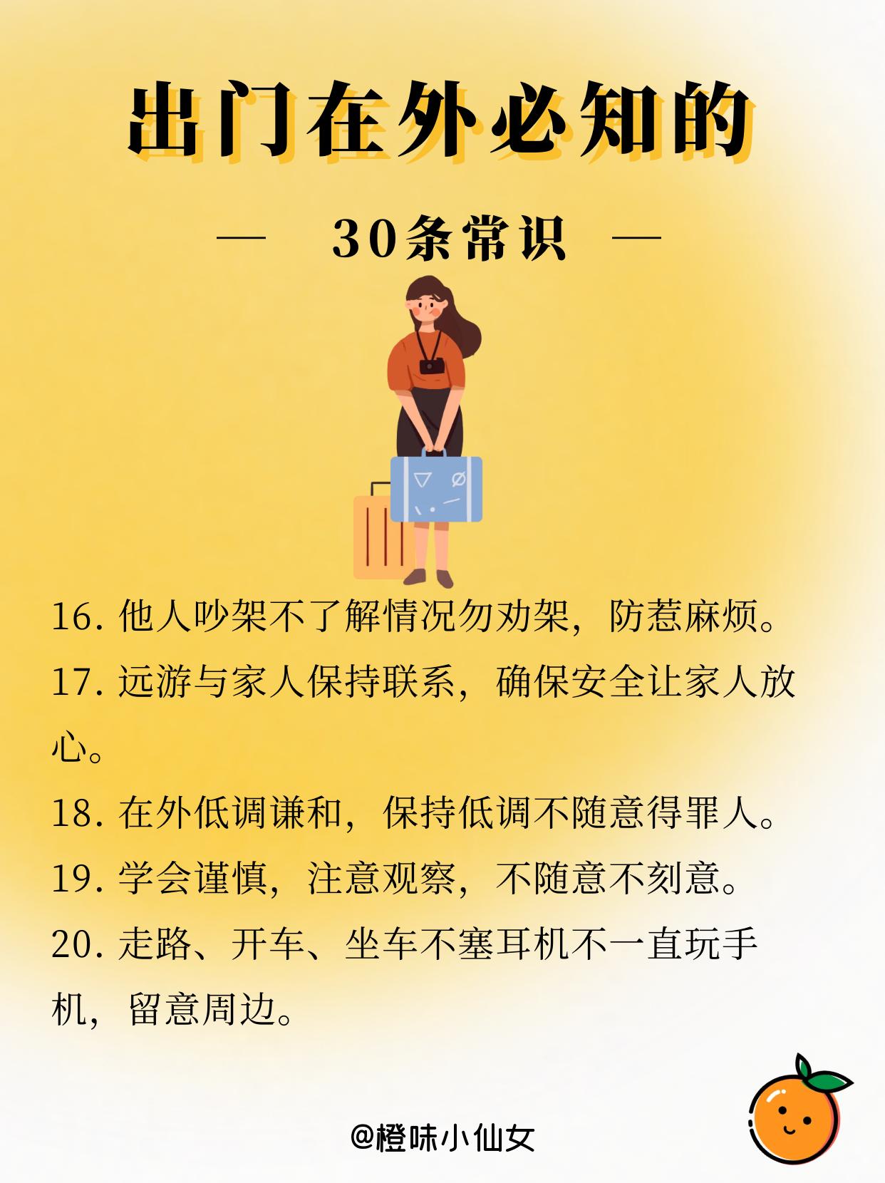出门在外,需要知道的30个常识~安全第一,平安出行。