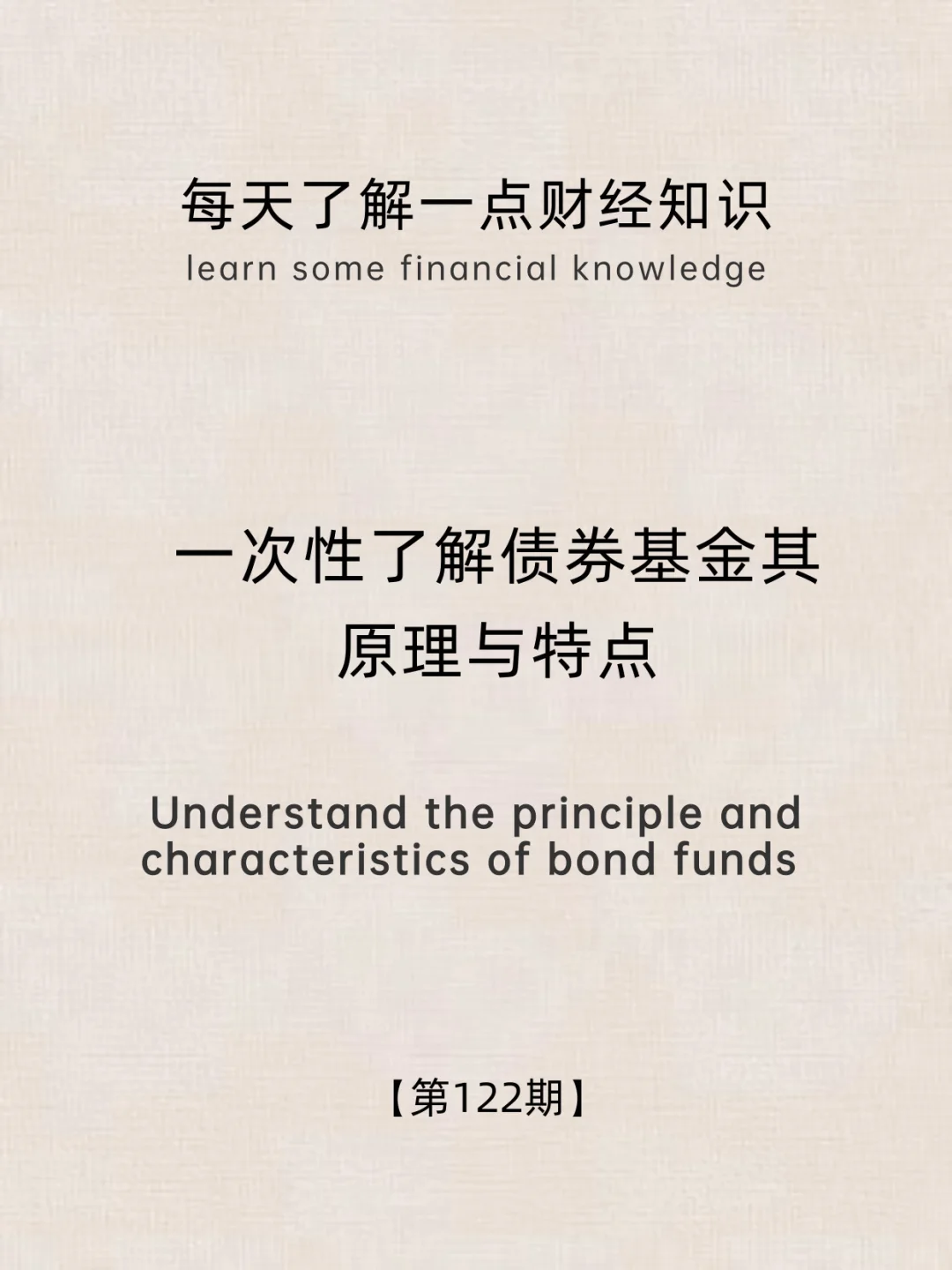 财经小常识第122期:一次性了解债券基金原理