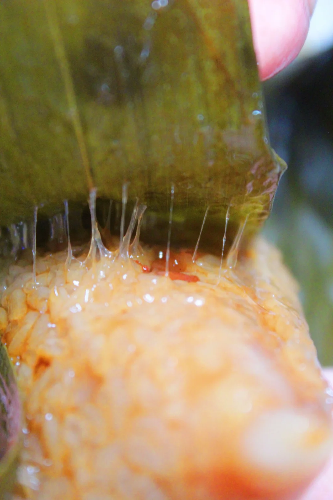 经过🔄27道精湛工艺和🕰️49个小时的匠心制作,成功还原了嘉兴粽的地道滋味!👌 不使用一滴酱油,我们特别选用了绍兴咸亨腐乳进行调味,制成秘制腐乳汁,再与🥘高汤混合拌入精选的糯米中。色泽油润红亮,米粒颗颗入味,散发出浓郁的酒香和独特的风味。😋 佐以肥瘦适中的短肋猪五花肉,口感肥而不腻,更加开胃!😍