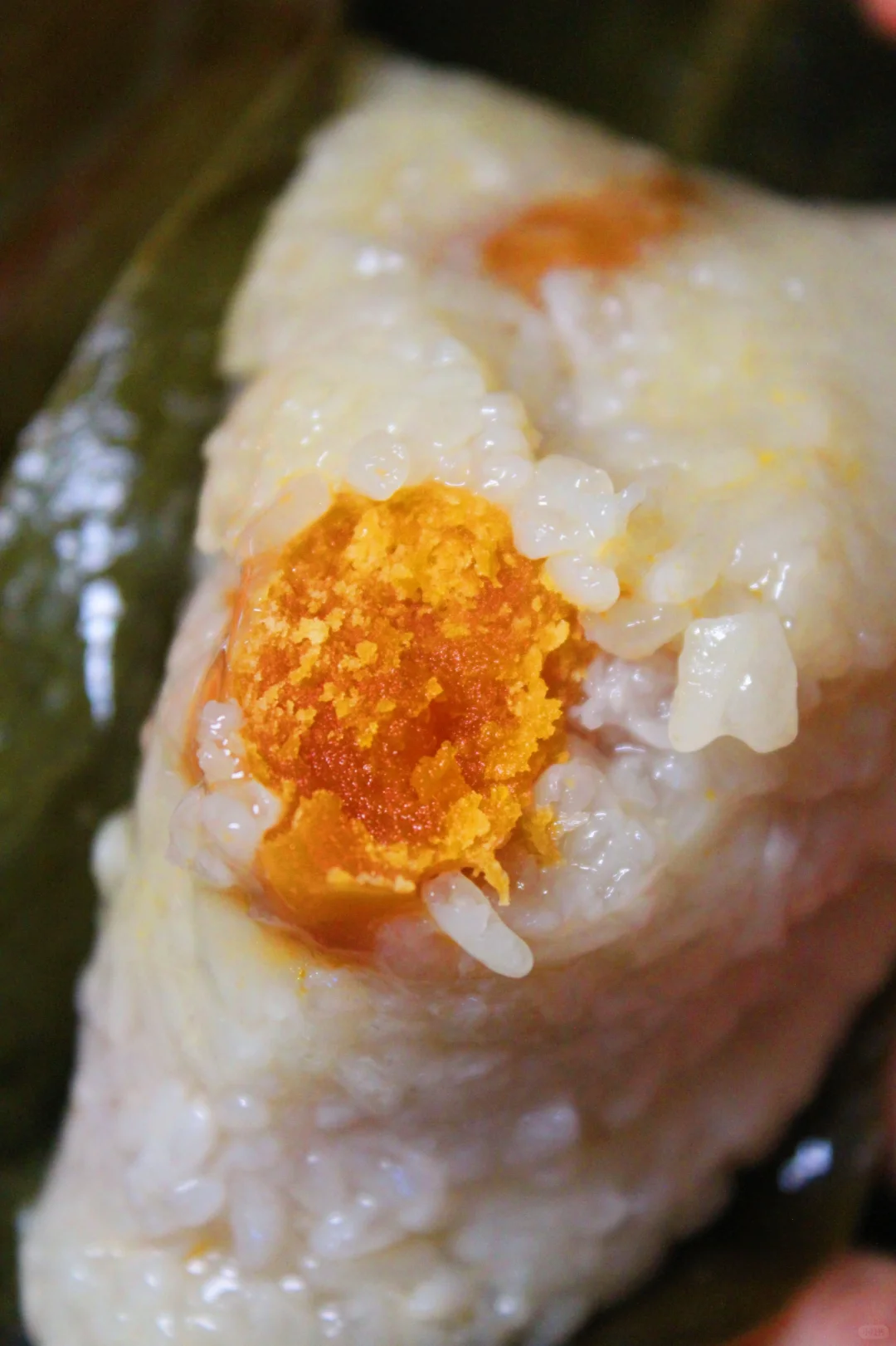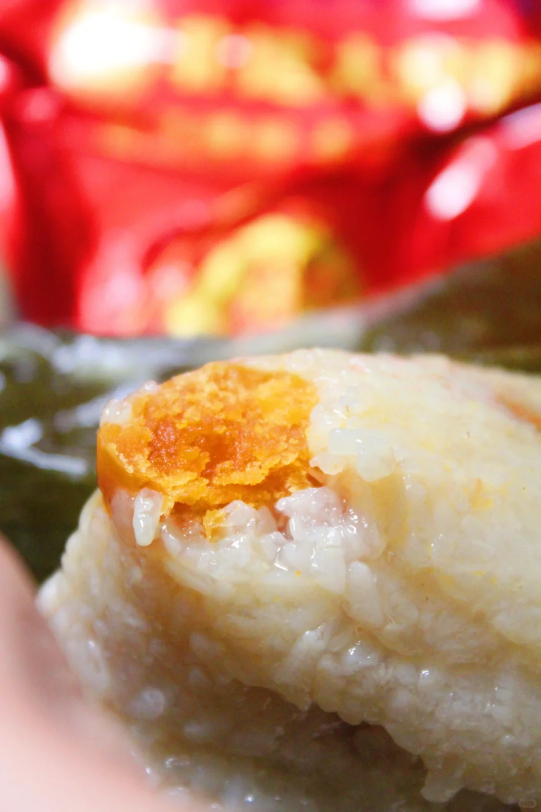 这款粽子白莹如玉,同样经过🔄27道精湛工艺和🕰️49个小时的匠心制作,还原了嘉兴粽的地道滋味!👌 我们坚持不使用一滴酱油,而是选择使用东北糯米和高汤入味。精选的短肋猪五花肉与两颗咸蛋黄相结合:松红冒油的两颗咸蛋黄,与肉汁鲜香完美融合,咸鲜适口,高汤味浓香醇厚,每一口都让人唇齿留香,回味无穷!😋💕