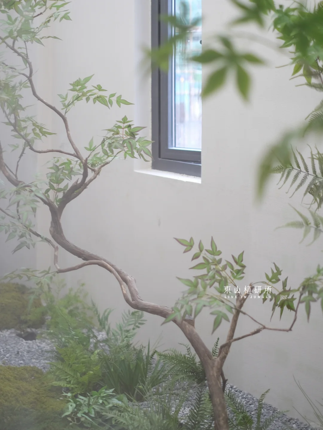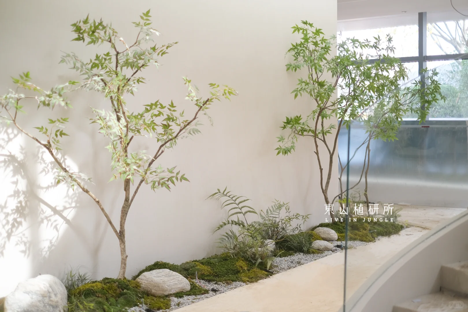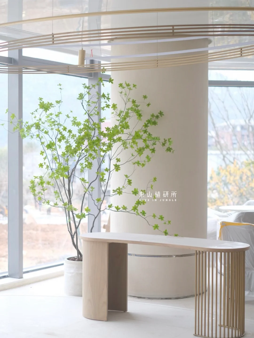 仿真绿植造景设计 整体设计以仿真树和永生苔藓的结合 结合当地气候选择了枫树、南天竹等植物 将自然变化引入室内 作为典雅秀气的美学呈现 给人一种舒适、松弛的体验 ——————