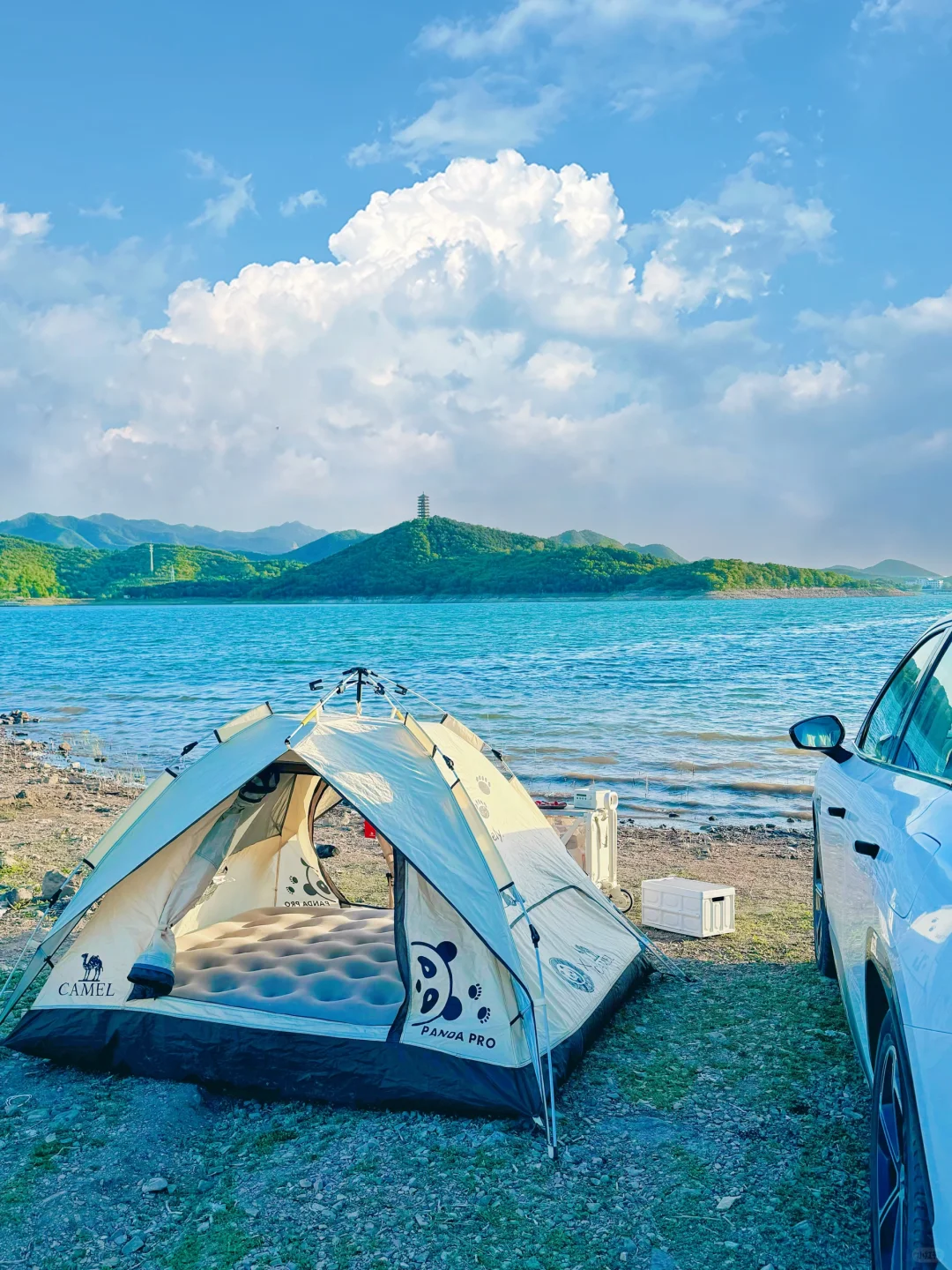 2、车子能开到水边,空地面积大,随意搭建帐篷天幕