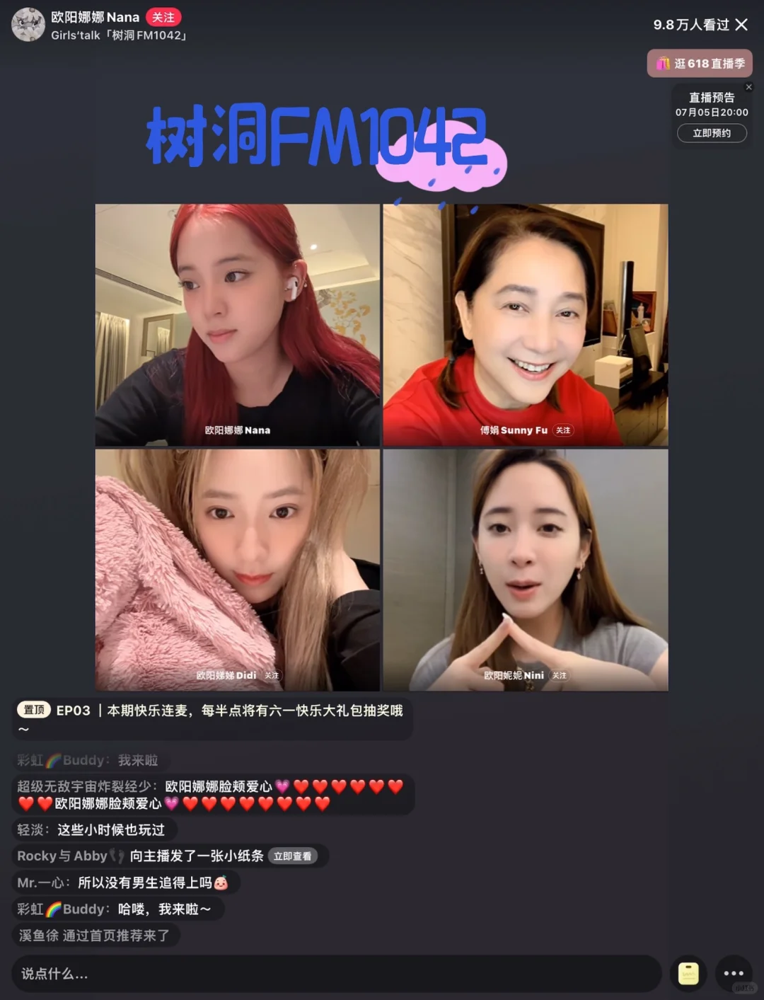 晚上看了树洞FM1042那个直播,是欧阳娜娜、妮妮和娣娣三姐妹和她们的妈妈傅娟的互动直播电台。感觉她们三姐妹的心态真的好好啊!完全是三只快乐小狗。当然心态好不是说她们不会不开心,而是她们在有负面情绪的时候会去排解,并且掌控自己的状态。比如今天说的主题是“快乐不分大小”,说到怎么对待焦虑,找到快乐,妮妮说会泡澡和撸猫、娜比说会把待办事项都列出来。