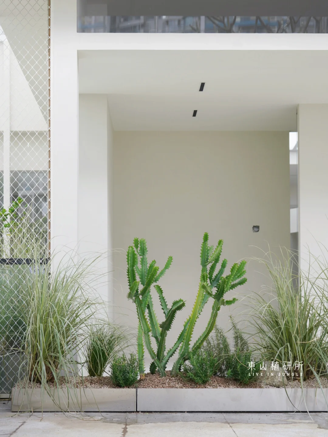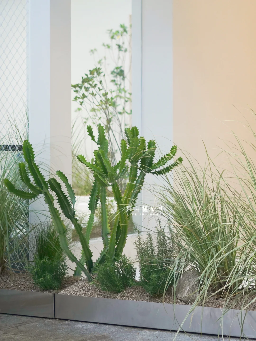 多空间绿植造景设计 🟢一楼入口处以草系植物为主,营造出自然野生的氛围,清新的灰绿色调带来高级感。 🟢二楼内部设计注重通透感,旨在打造自然轻松的环境。 通过留白来增强空间的呼吸感,同时保持植物的自然趣味,与其他区域的野生风格相呼应。 🟢二楼户外入口设计较为自由自然,仙人掌的融入为空间增添独特个性,与品牌随性自在的时尚理念相得益彰。 室内外三个区域 根据设计的考量采用不同植物 营造调性一致又各有特色的自然野趣氛围 ——————