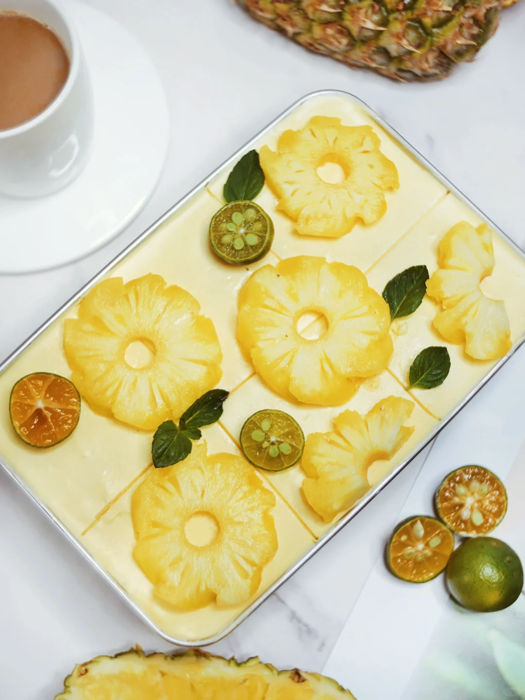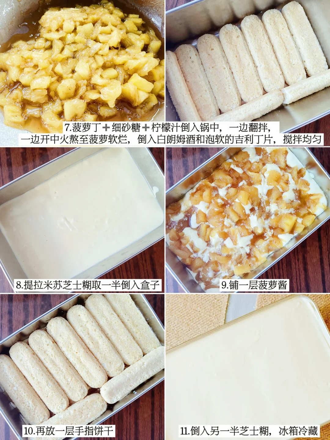 今天制作的菠萝味提拉米苏,不仅口感轻盈,还能吃到大块的菠萝果肉,添加了朗姆酒🍸和柠檬汁🍋调味增香,别提多好吃了[色色R]