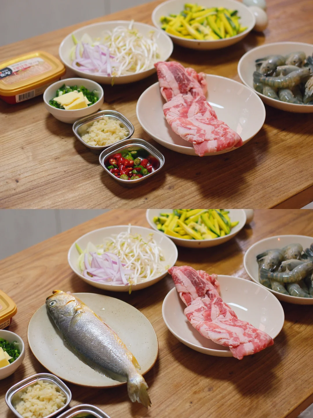 今日菜单: 1.糖醋黄鱼(糖醋料汁:1勺白糖、1勺醋、2勺生抽、半勺老抽、1点点盐、1勺番茄酱) 2.咸蛋黄炒南瓜 3.韩式辣酱炒肥牛 4.黄油胡椒罗氏虾