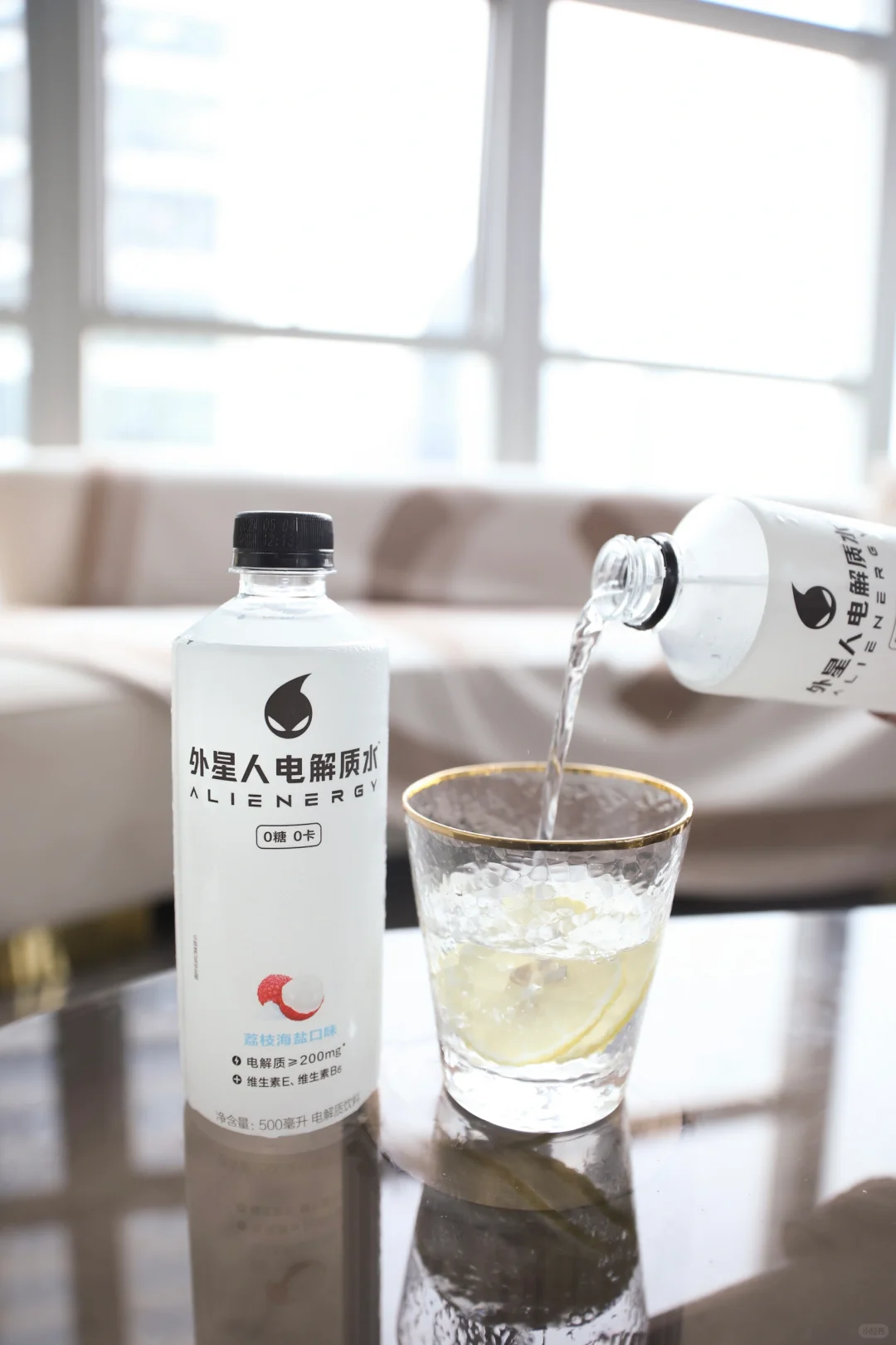 中间休息的时候还可以来一瓶荔枝海盐味的外星人电解质水,口感清爽就特别适合夏天,0糖0卡喝起来也没负担
