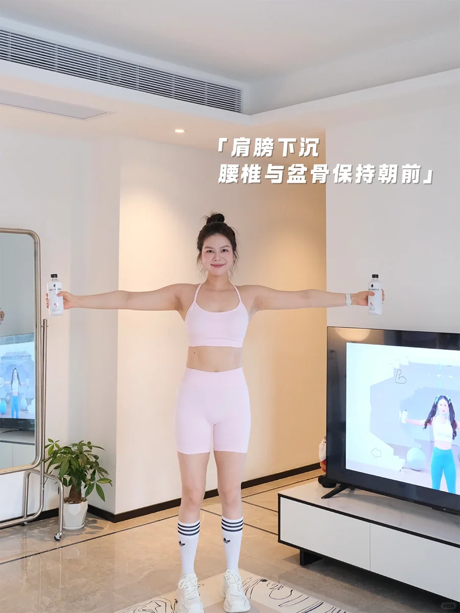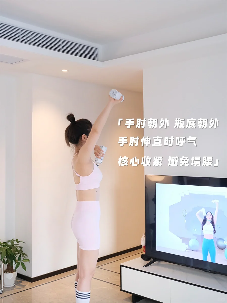手臂操的部分也不需要专门准备哑铃,两瓶外星人电解质水就能搞定