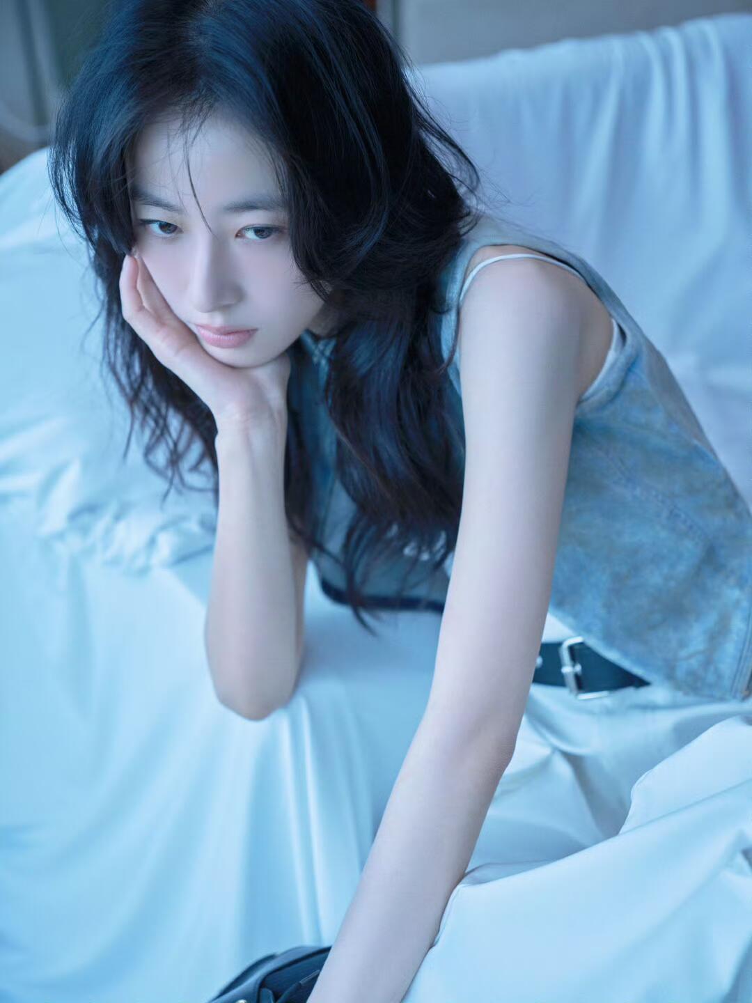 面对镜头时,周雨彤展现出了十足的张力,仿佛每一个眼神和动作都在诉说着故事。她似乎也很享受这独处的时光,在静谧中散发着独特的气质。