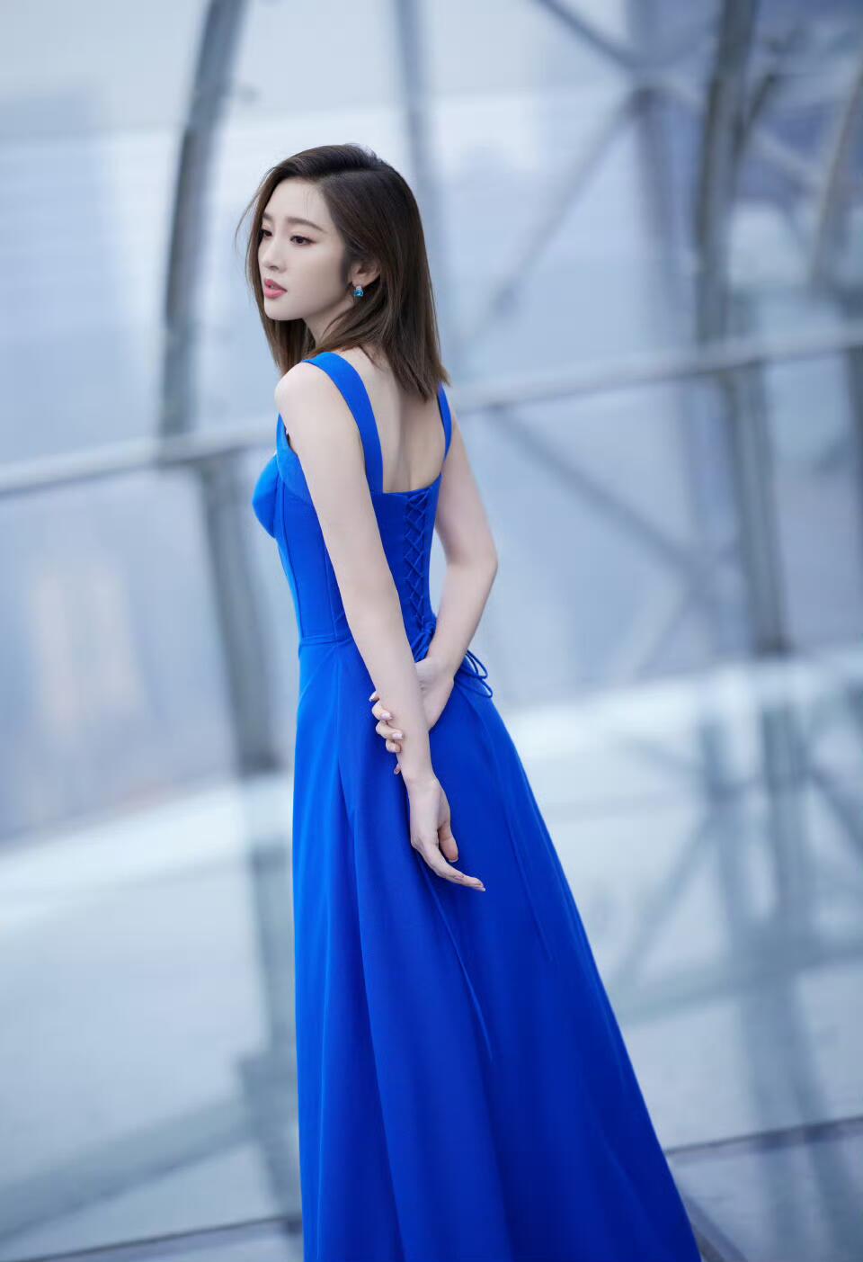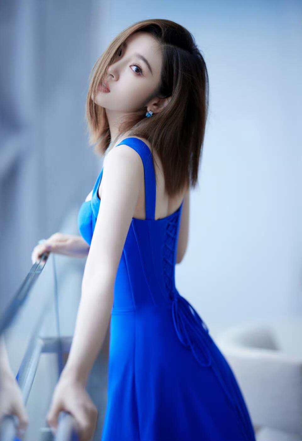 蓝色是神秘感的代名词,唐艺昕穿上它,仿佛让人看见了海洋深处的神秘魅力
