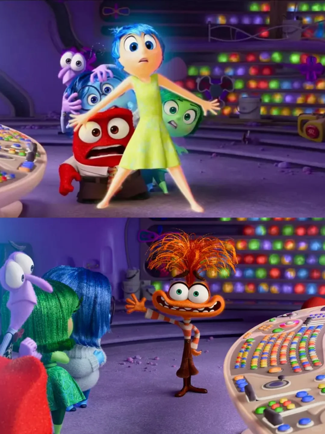 🔗 随着小女孩莱莉进入青春期,新情绪“焦虑”“羡慕”“尴尬”“丧”占据了大脑,主导了她的高中冰球队生活。面对更复杂的人际关系和人生思考,这些“高级”情绪能提供更“讨巧”的应对,但也会放大焦虑感,对人对己都无法坦诚。而被扫地出门的“喜怒哀厌惧”,也在夺回控制权的路上意识到形成完整人格的复杂性。每个被刻意丢弃在遗忘角落的不那么美好的,不愿回想的记忆,都是塑造自我的元素。