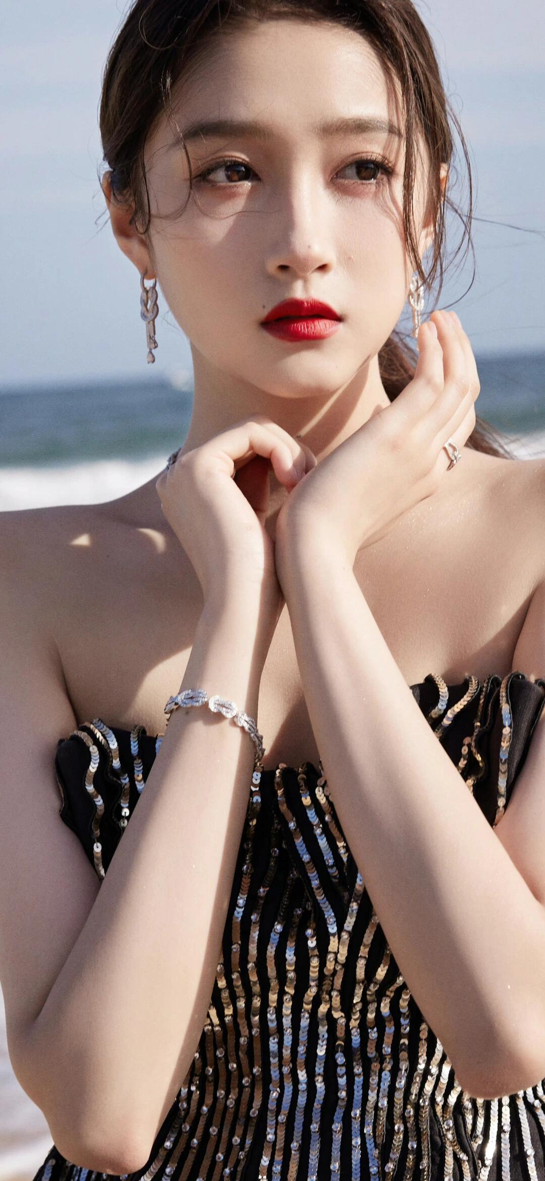 讲真....第一眼我没认出来是关晓彤,素颜皮肤很好,但是妆后五官更立体