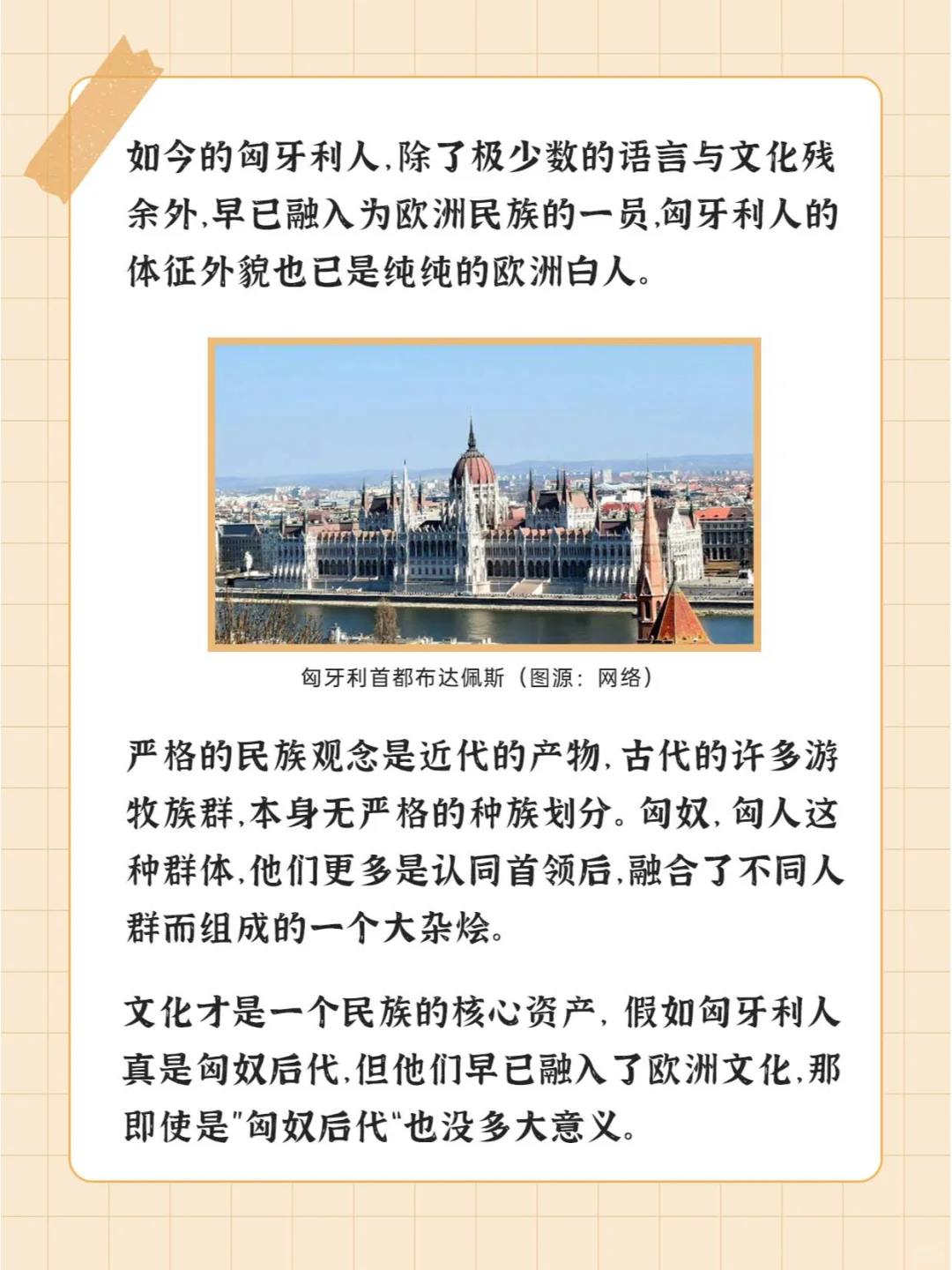 文化才是一个民族的核心资产,假如匈牙利人真是匈奴后代,但他们早已融入了欧洲文化,那即使是”匈奴后代“也没多大意义。