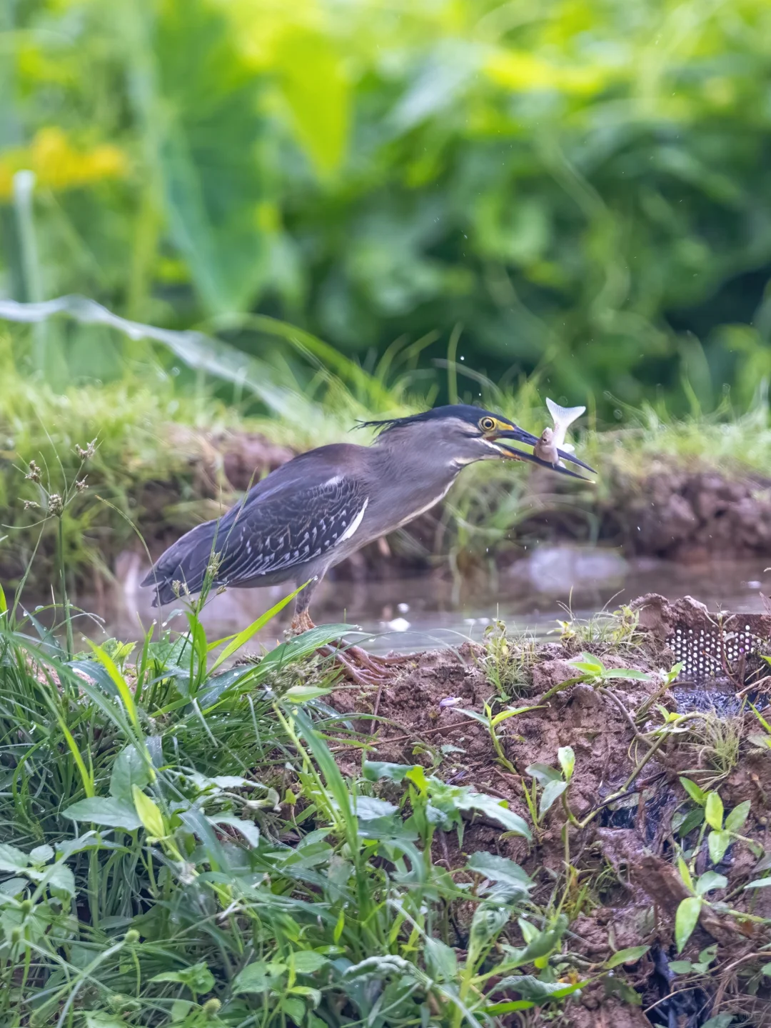 原创拍摄 绿鹭,是鹈形目鹭科绿鹭属。绿鹭的头顶和松软的长冠羽闪着绿黑色光泽,所以叫绿鹭。 绿鹭其实在我国数量不多的,远远比不上其他大部分鹭鸟,可能在东部东南部多一点。 这只绿鹭好漂亮,最后也抓到好几条鱼。