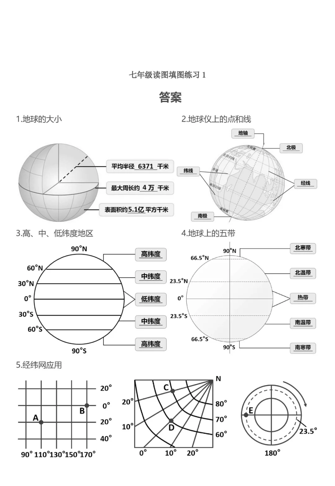 1.地球的大小 2.地球仪 3.中低高纬度的划分 4.五带的划分 5.经纬网的判读 6.地球自转公转示意图 都是地理学习的基础!学好地理的关键!! 八年级终于开始会考复习了,基础是真的差,就从七年级开始复习吧,读图识图对地理来说太关键了,一定要记住各种图[拳头R][拳头R][拳头R]