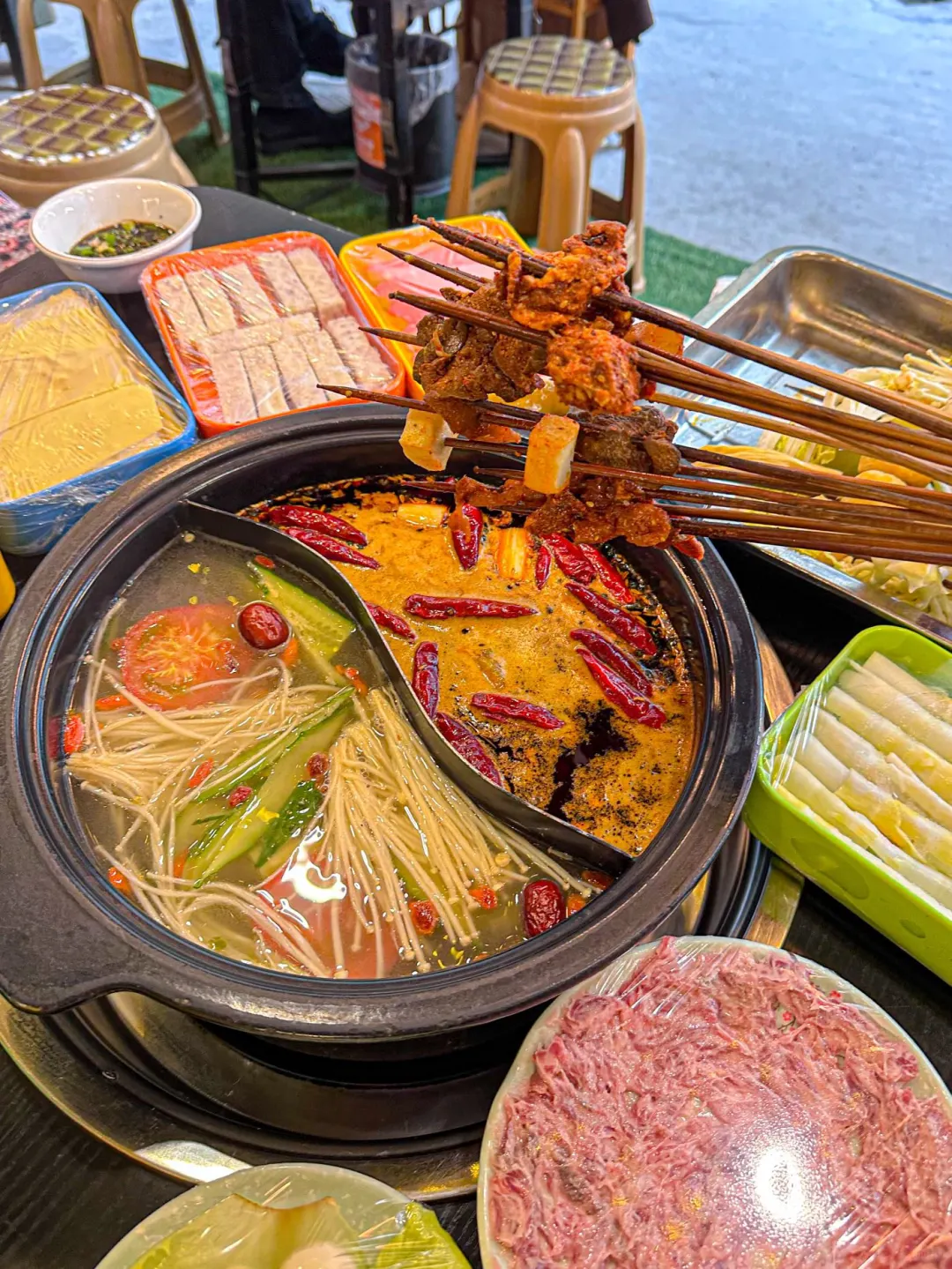 串串随便拿,都没有踩雷的!特别推荐大肠和腊肉涮辣锅,真的是香到让人狂咽口水!🤤