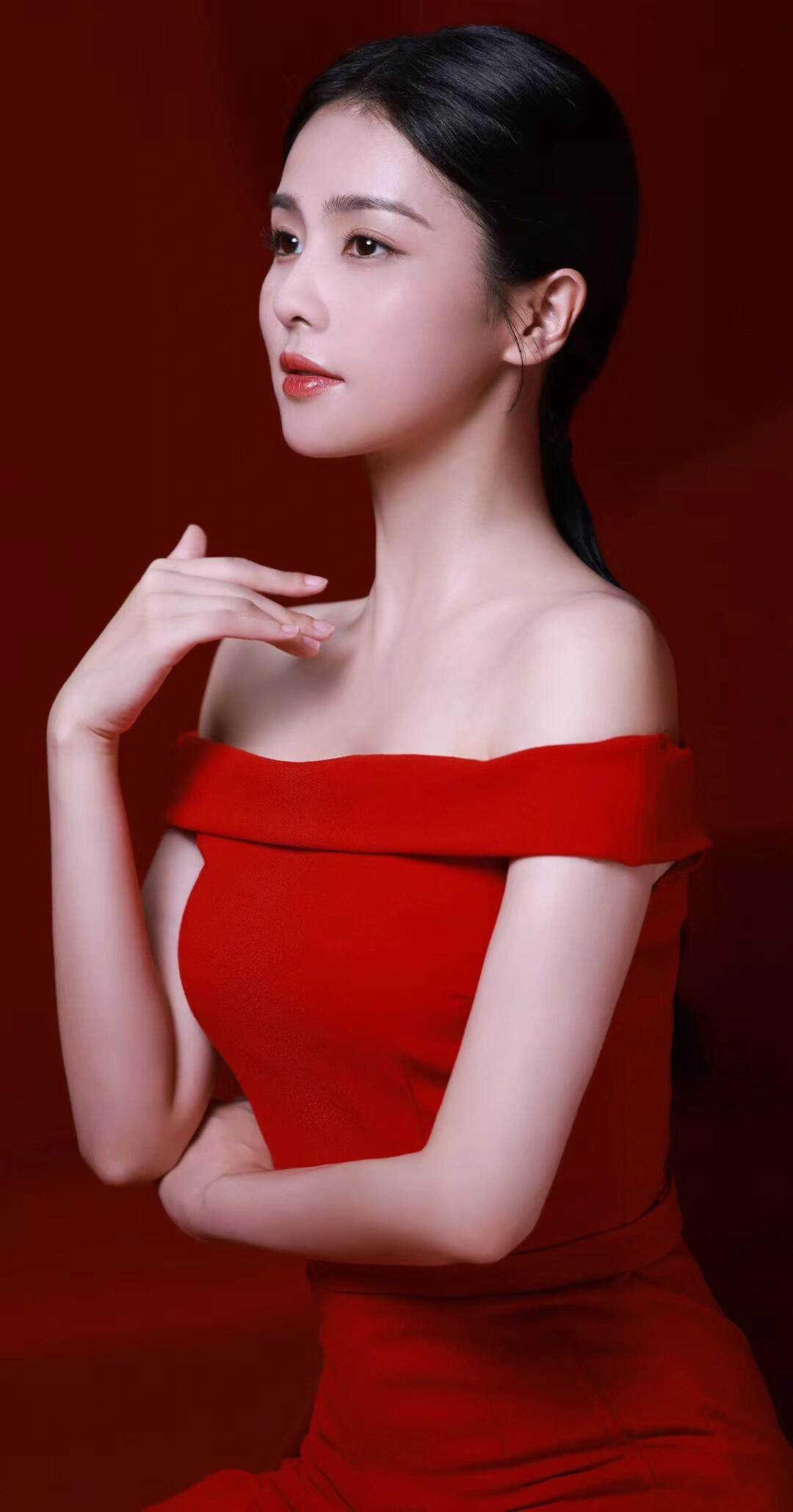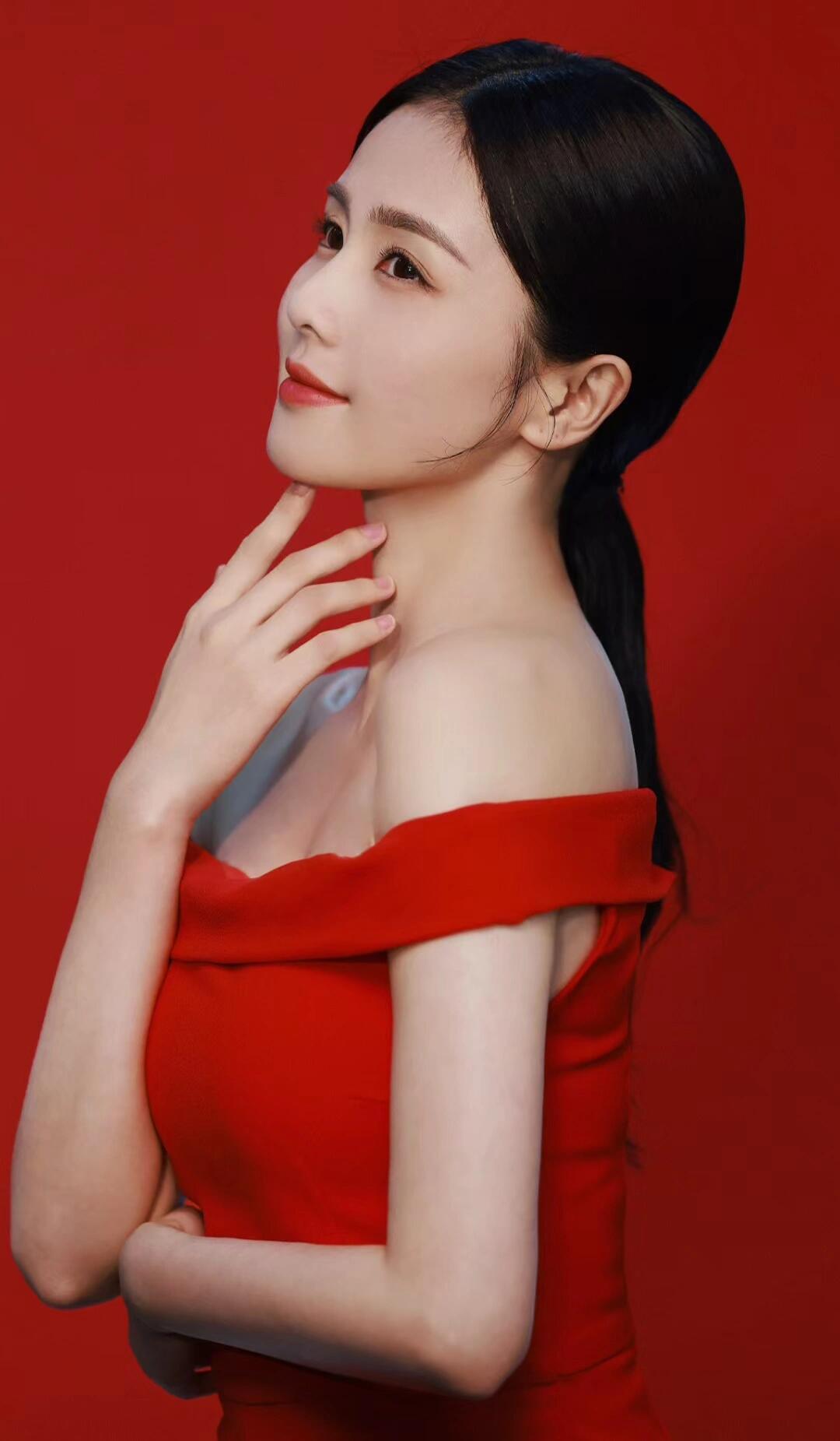 白鹿身穿吊带背心和露肩的红裙,她俏脸清纯,唇红齿白,肌肤白皙如雪,甜美元气,青春的气息中大秀自己的香肩,让她的美丽更加耀眼。