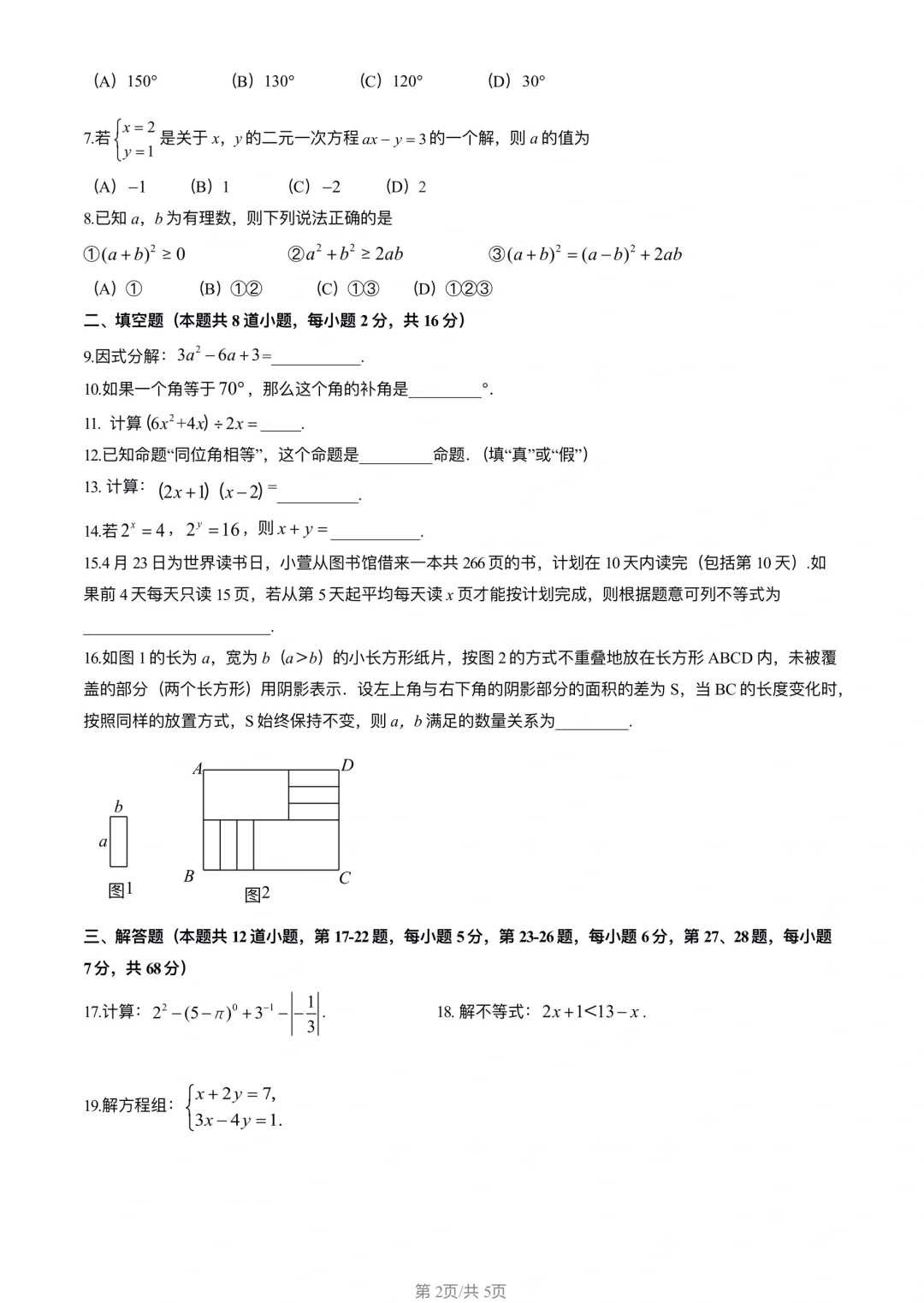 2024七下数学期末(昌平)练习