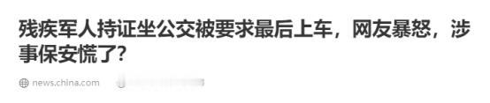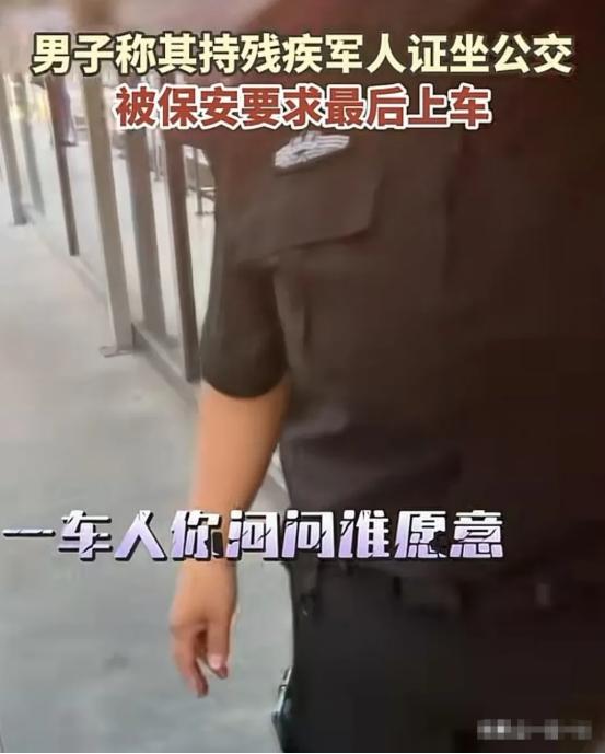 “这个女保安火了!”上海一个在部队受了伤的退役军人,上车不能站太久,就向女保安求助,希望能够优先上车,却不料女保安不但不让他先上车,还要他站到后面去,最后一个上,即使军人拿出自己的残疾军人证,女保安还是盛气凌人地说:一车的人,你问问谁愿意。网友们却说:我们都愿意让他先上。 “多站一会怎么了?人家都能站得住,就你站不住!”一名女保安正朝着一名男子大声的训斥,丝毫没有看到这名男子对她那希冀的眼神。 女保安的做法在网上顿时引起了众怒,网友们纷纷对其口诛笔伐,而后续运输公司是怎样处理这件事情的,而这名男子在之后又会有怎样的做法? (主要信源:中华网新闻-2024.05.31《残疾军人持证坐公交被要求最后上车,网友暴怒,涉事保安慌了?》) 牛先生是一名退伍老兵,原本在部队干的好好的,一次意外事故之后,他也落下了一些残疾,为了不拖部队发展的后腿,他选择主动退役。 因为那次受伤,单位也为他出具了一份残疾军人证件,以此来为牛先生今后的生活提供一些帮助。 那一天牛先生因为一些事情需要坐公交车出门,却遇到了一件让他感觉到非常没有人情味的事情。 社会上国家对于退役、现役以及残疾军人都有特殊的照顾,像优先排队等一些优惠政策是具有明文规定的。 这天牛先生等待的公交车辆排队人比较多,而等的时间也挺长的,渐渐地他的身体有些受不住了。 而这个时候,车辆终于缓缓驶来,牛先生此时的状况不太允许他往前拥挤,于是他决定向在场的工作人员寻求帮助,正好旁边有一名正在维持秩序的女保安。 牛先生向女保安表达了自己的诉求,称自己实在是站不住了,希望可以优先上车,并且还出示了自己的残疾军人证件。 本以为这个女保安在了解到牛先生的情况之后,会做出一定的反应,谁知道递到眼前的证件,她连看都不看一眼便拒绝了牛先生的请求,认为他这是在妨碍秩序。 尽管牛先生一再解释自己的情况,以及残疾军人证的适用范围,而女保安不仅一句听不进去,反而变得有些不耐烦。 她的声音带着些呵斥的意思对着牛先生说,让他问问这一车人谁愿意让他先上,接着便出现了开头的一幕。 之后更是让牛先生等到最后一个再上车,对于女保安的行为,牛先生心里十分的不好受,作为一个久经沙场为国奉献的退役军人,竟然受到这样的对待。 即使心里有些不舒服,但是牛先生还是考虑到当时的环境,就没有为自己辩驳。 在之后,牛先生将当时拍摄的视频发在了网上,顿时引得广大网友群情激愤,纷纷表示如果自己在当场要是碰到这样的情况,二话不说肯定是先让牛先生上车。 而其他乘客对于这种情况也肯定会理解,不是所有人都和那个女保安一样。 这个运输公司在得知情况之后,当即就向牛先生表达了歉意,同时对于员工服务缺失的情况,该公司表示今后会加强对员工的培训,杜绝此类事情的发生。 而牛先生发视频的目的也并不是为自己鸣不平,而是想让更多人了解残军证的使用范围,而对于那个女保安,牛先生并没有过多的追究,反而希望公司在给她一次机会。 保护万家灯火的英雄,我们要让他们在卸下担子之后,感受到他们曾经的付出在如今是有温度的。