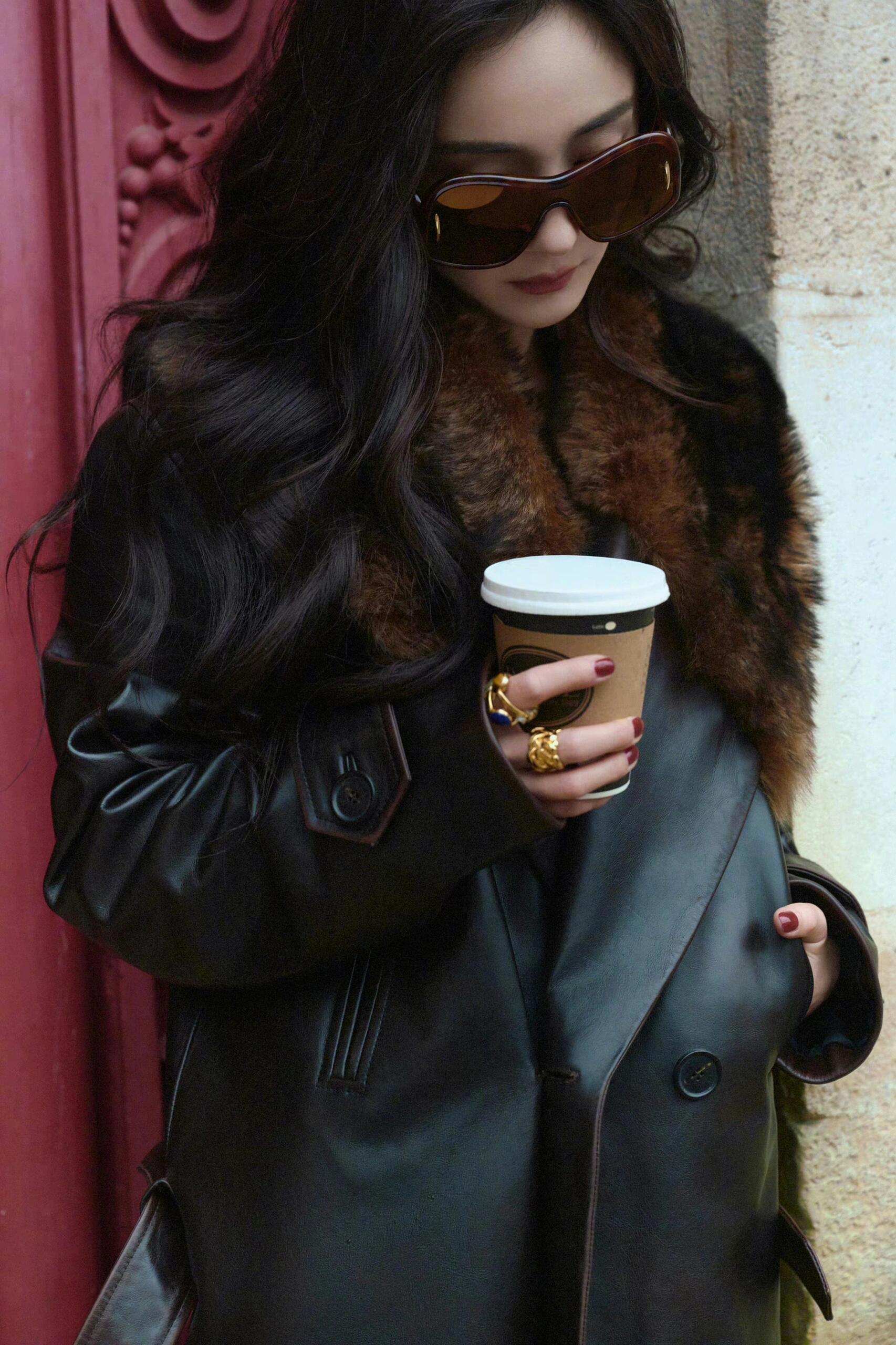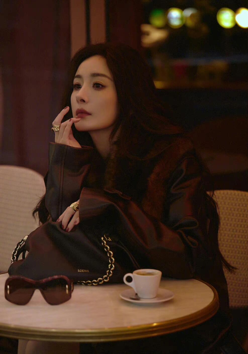 杨幂身穿利落皮大衣配钻饰高跟,街角、雨天、咖啡摩登文艺格调,巴黎的日与夜,异国美丽邂逅