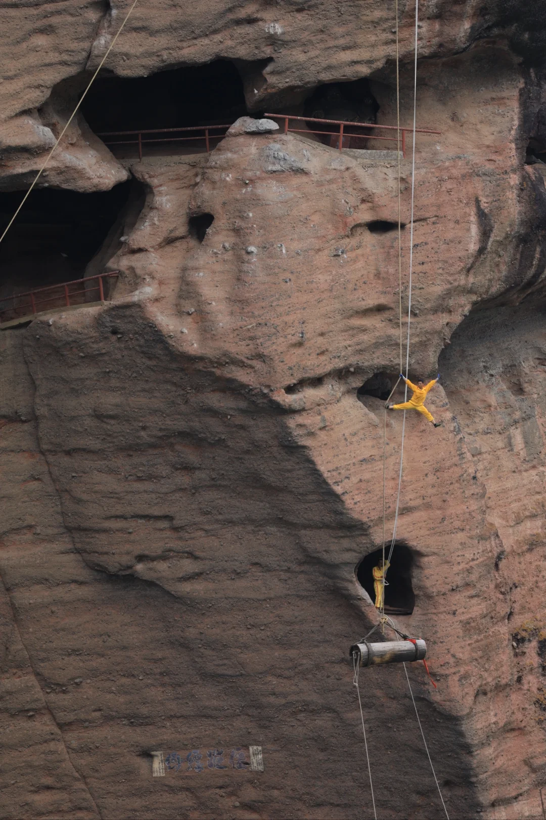 一场跨越千年的“升馆”表演惊险上演,复刻了古越人崖墓悬馆的场景,震撼又神秘