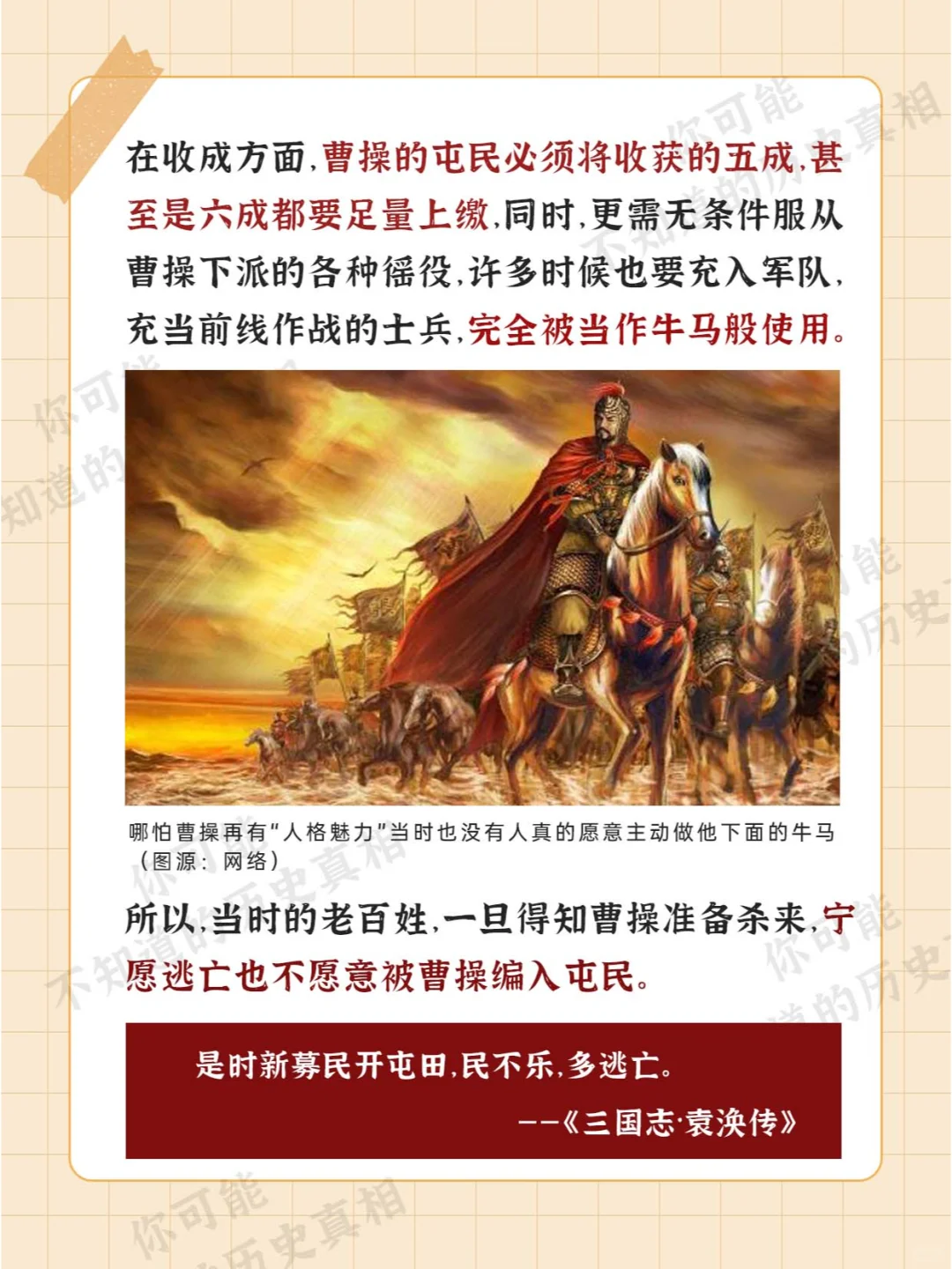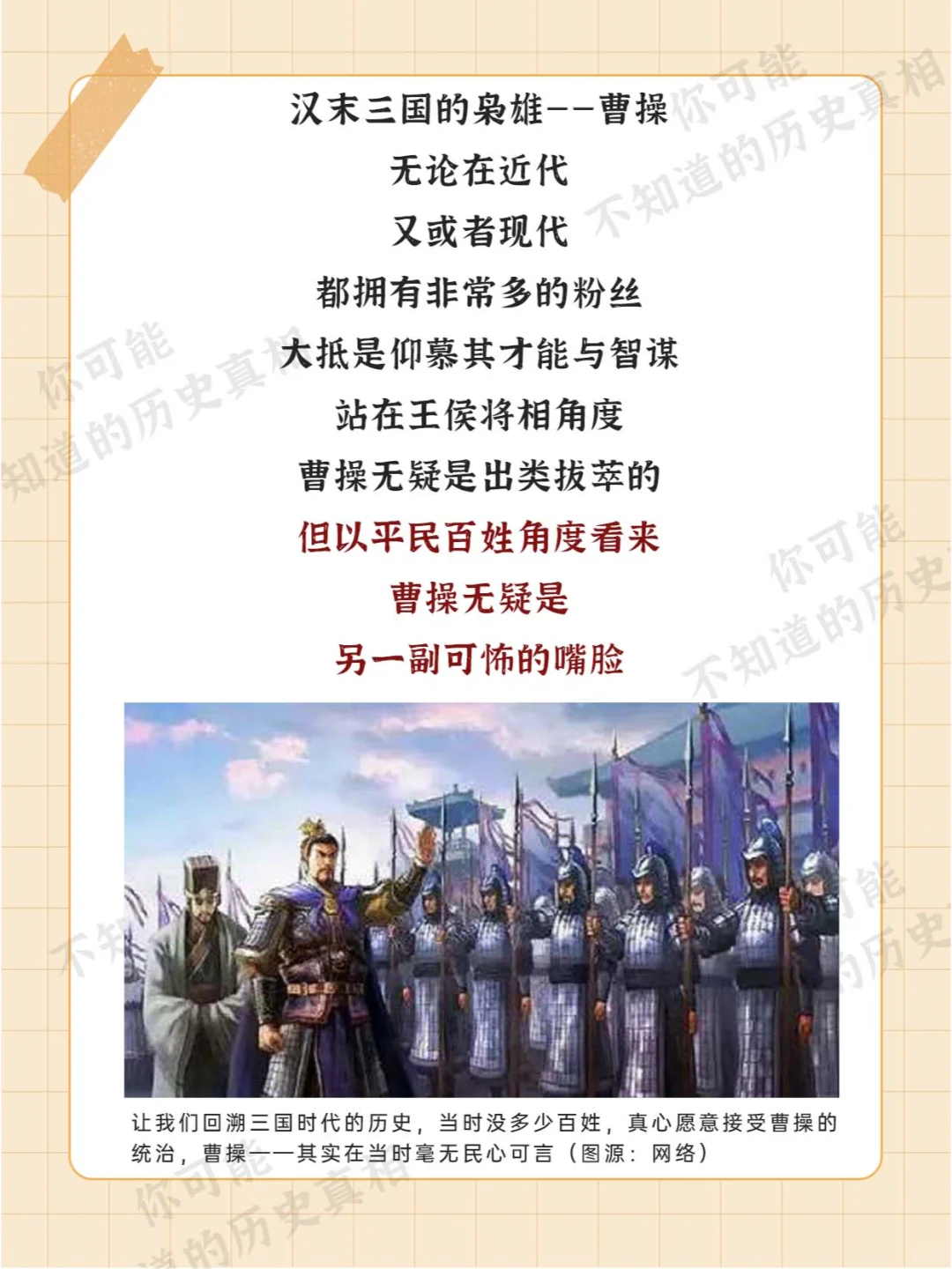[微笑R][微笑R][微笑R] 毫无疑问 从王侯将相角度看 曹操是个出类拔萃之人 [doge][doge][doge] 然而 对于同时代在曹操统治下的百姓而言 [可怜R][可怜R][可怜R] 曹操 无疑是他们的噩梦 [叹气R][叹气R][叹气R]