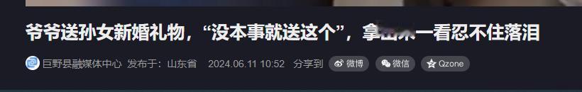 这就是最好的礼物!2022年四川眉山,一位年纪近九十岁的爷爷在孙女结婚前神神秘秘的把她叫到自己屋里,说是要给她一个结婚礼物,孙女看完瞬间哭成了泪人,网友看完也瞬间不淡定了。 “爷爷没别的本事,只好送给你这个了,你看看喜欢不喜欢?”看着已经九十岁的爷爷从箱子里拿出的东西,放在桌子上,眼神中满是希冀,女孩噙着眼泪,用力的点了点头。 到底是什么礼物,不仅让孙女感动得落泪,更是让见过这个物件的网友都有些坐不住,礼貌询问女孩会不会出手。 (主要信源:搜狐网—2024.06.11 《爷爷送孙女新婚礼物,“没本事就送这个”,拿出来一看忍不住落泪》) 小美是是一个土生土长的农村女孩,因为一次意外,她和父母都在那次意外中收到了不同程度的伤害,多少有一些残疾。 而当时发生了这件事情之后,年迈的爷爷对于这个情况毅然重新扛起了家庭的担子,对自己的小孙女格外的照顾。 爷爷在年轻的时候曾经做过几年的裁缝,直到现在,他的手艺依然没有落下,是一个经验丰富的老裁缝,有时候一些针脚上的问题,当地做裁缝行业的人还会来请教小美的爷爷。 尽管日子过得有些艰辛,但是爷爷对于小美的宠爱却不曾有过减少,而小美也在爷爷的呵护下健康的长大成人。 日子过得飞快,小美也要到了快结婚的年纪,爷爷每天都悄咪咪的不知道在忙些什么,眼瞅着自己的婚期将至,小美也将爷爷忙着不知道干什么的情况忘得一干二净。 直到那天,爷爷拉着小美来到了他的屋子里,说要给她一个惊喜,靠里面点的位置放着一个比较大的红木箱,小美知道这里面放的是爷爷经常用到的裁缝工具,因为她小的时候经常翻。 只见爷爷慢慢的走到箱子旁边,打开了小美好久都没有翻开的箱子盖,爷爷缓缓拿出一个塑料袋包裹的红色物品。 而小美也在猜测这是个什么东西,只见爷爷将上面的塑料袋揭开,露出了礼物的真容—一对传统手工制作的喜庆布娃娃。 男娃娃身着大红官服,头戴状元帽,好不威风,女娃娃则是从头到脚,一身凤冠霞帔,甚是好看,尤其是在细节的部分,爷爷更是做到了极大程度的还原。 望着眼前的一对中式娃娃,小美的眼眶瞬间湿润了起来,看起来就十分复杂的工艺,这要耗费老人多少的心神啊! 而开头的一幕也在这个时候重现,爷爷温柔的轻声细语,让小美再也绷不住了,这哪里是没什么送的,这个礼物的价值早已达到了另一种高度。 不仅仅只有娃娃,在2021年的时候,爷爷就曾手工织了一件大红色的旗袍,品相看上去也很是不错,老人之所以这么做是因为上了年纪,怕自己看不到孙女出嫁。 这样的礼物不仅包含了老人的技艺,更是对孙女的疼爱,网友在看到这样精美绝伦的娃娃时,也是难掩激动的情绪,表示这个娃娃的分量绝对是全球独一份的限量款。 有些网友还希望小美能够出手卖给他,直言不讳的表示价钱好商量,而小美则表示这个娃娃自己无论如何都是不会卖的,这里面包含着的是爷孙的浓厚感情。