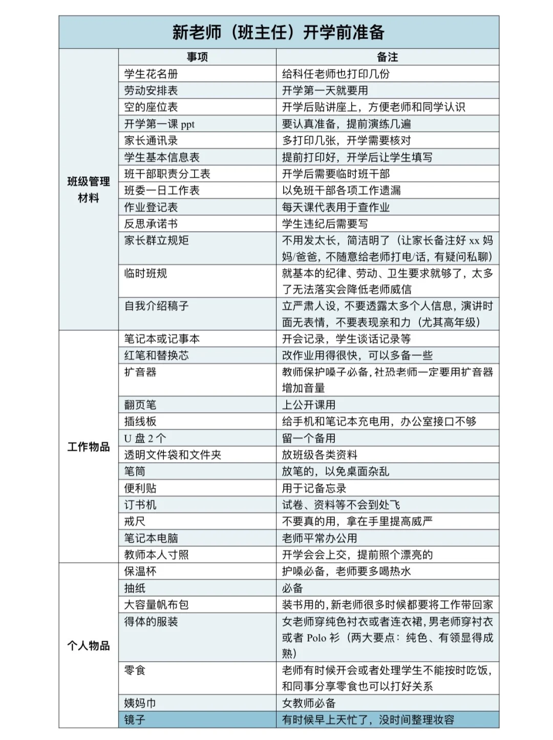 离开学只有一个多月了,新班主任们应该如何迅速而有效地开展工作呢?今天星辰老师为大家整理了开学前和开学第1⃣️天需要准备的工作😎,记得👋藏好噢~