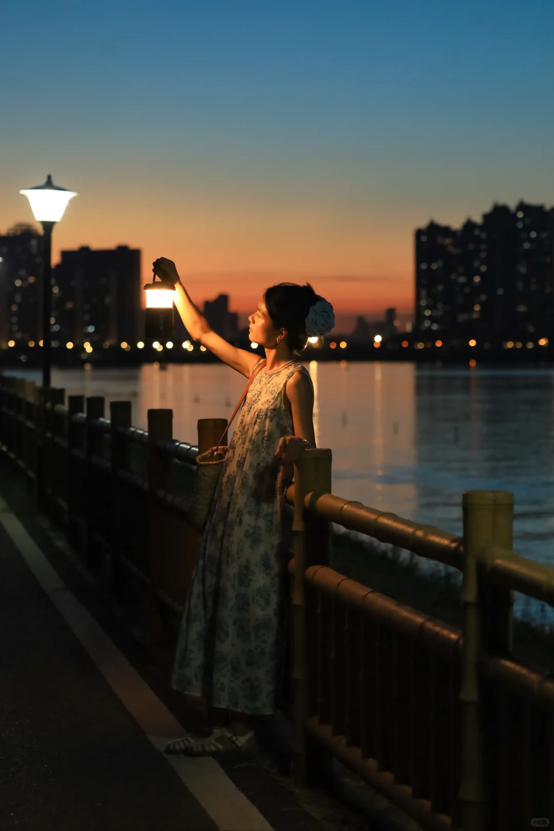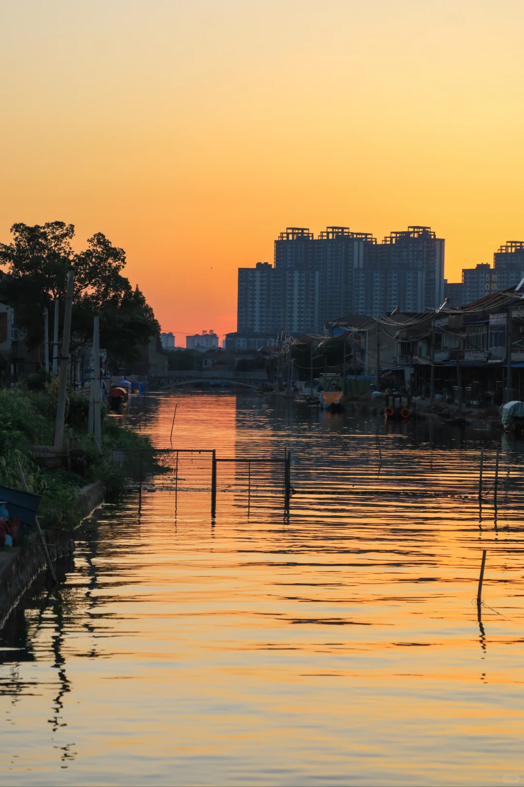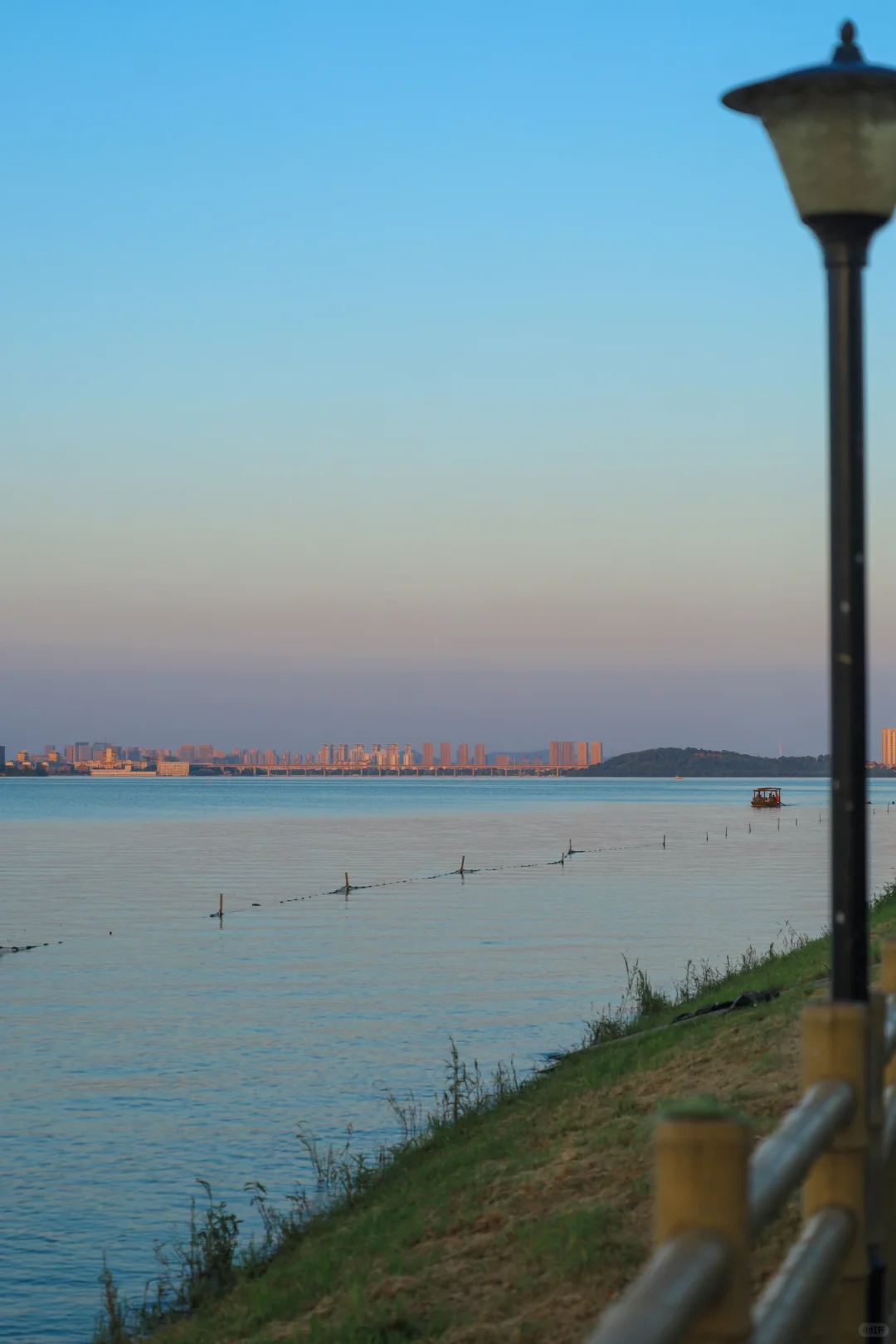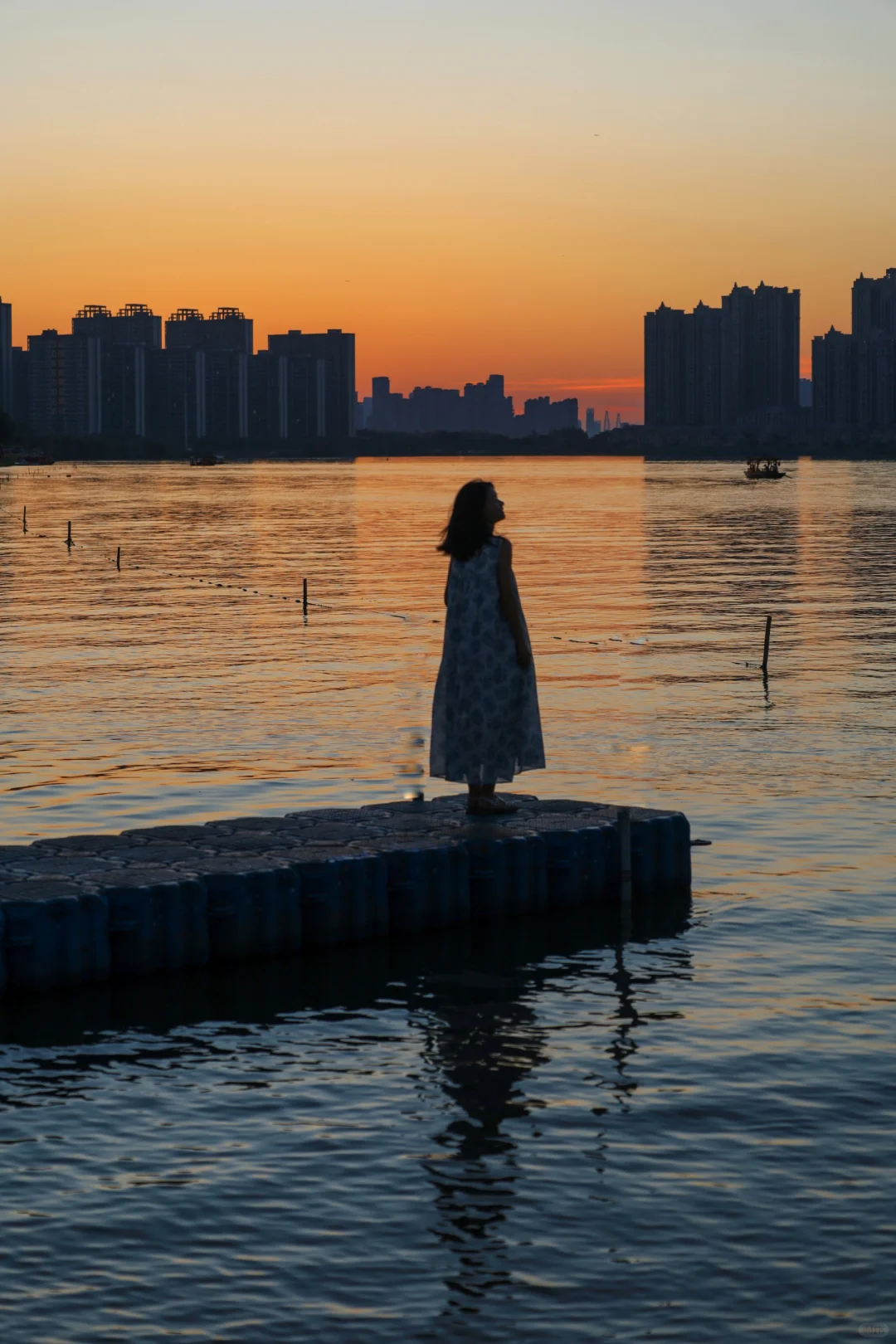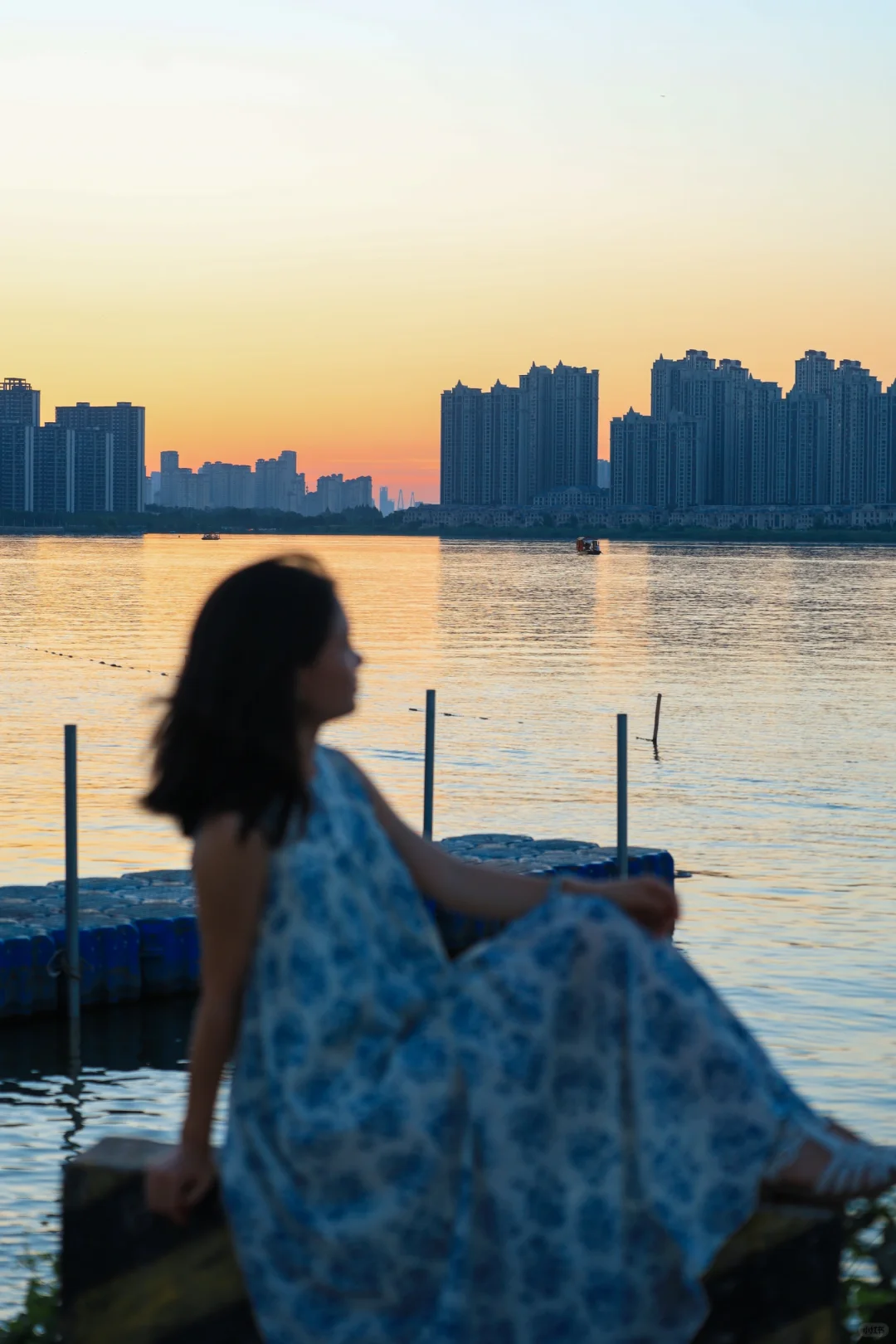 谁懂啊❗️冒着高温出门偶遇一片橘子海 渐变色的湖面和小船,氛围感拉满 蓝调时刻美的好像《爱乐之城》电影