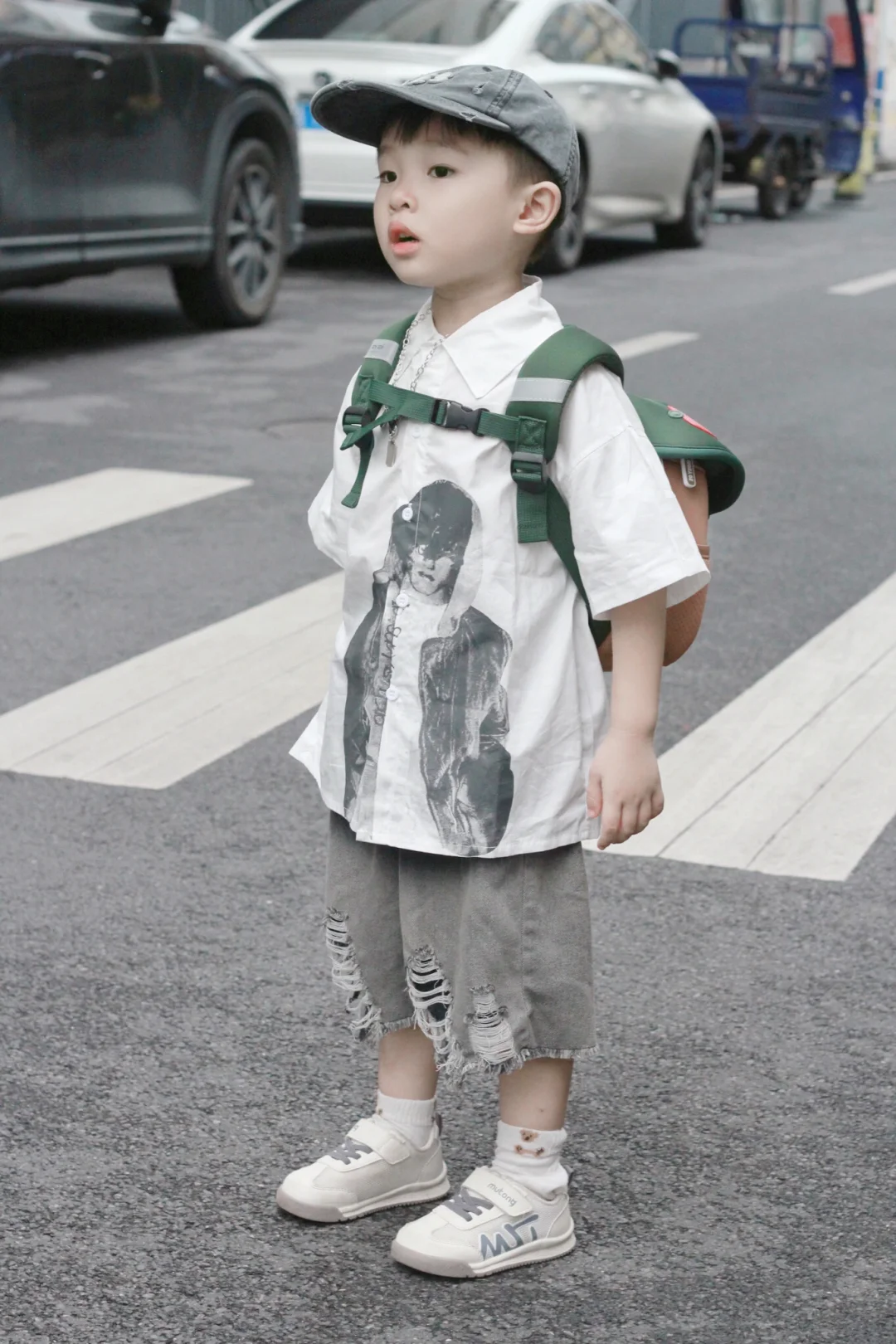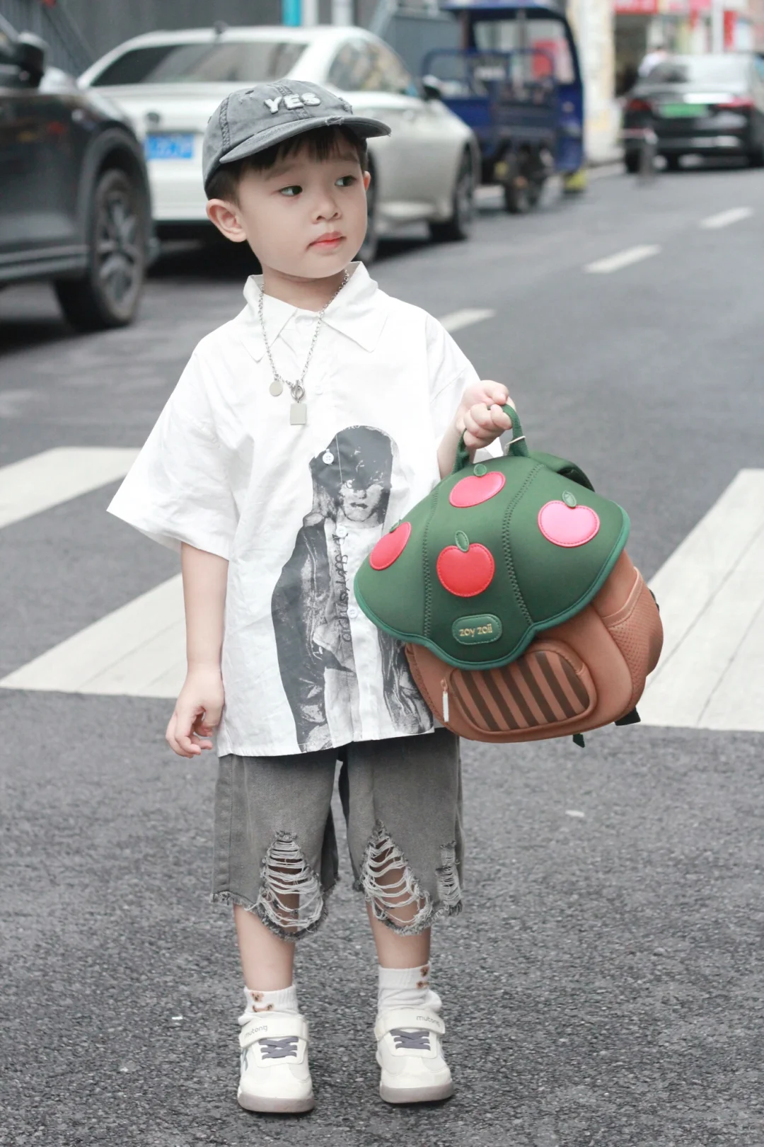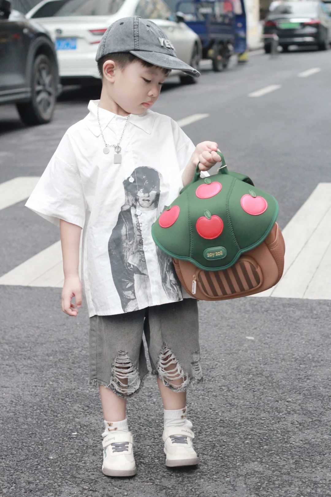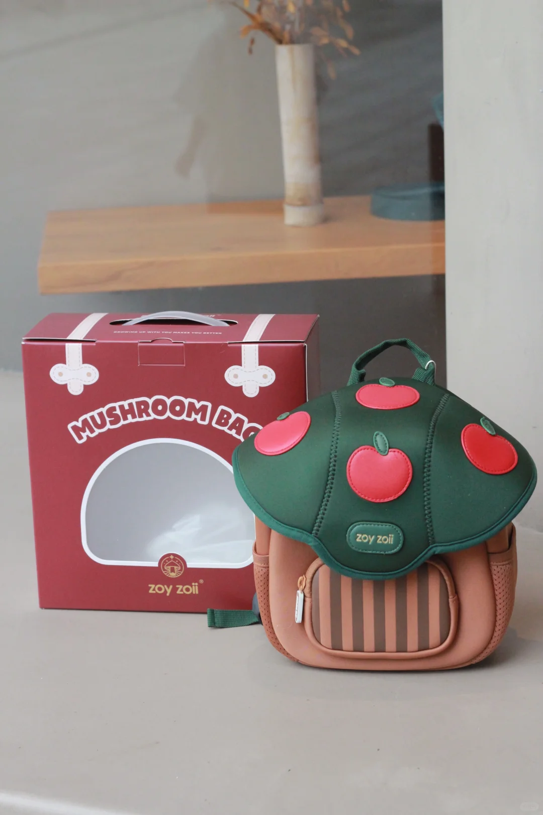 就是介个蘑菇小书包,出门走到马路上回头率超高,外观挺吸引人,不仅容量大,而且透气性好,小巧又轻便,有防滑胸扣,不容易脱落,肩带带有反光条,夜行出门也安全,有大人同款就好了,可爱又实用!!出门往包里放点小零食、水杯、纸巾、轻松就让娃背着出门~