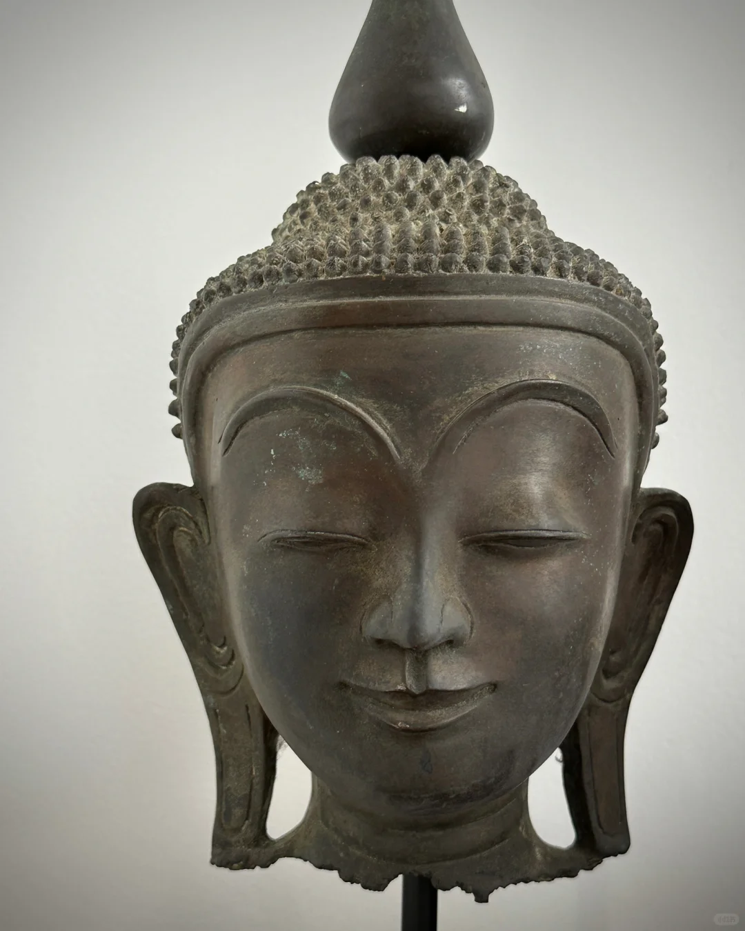 最近收到最喜欢的一件,来自缅甸17世纪掸邦风格的青铜佛首。整个开脸面孔深深吸引我,难得一遇的珍品,尺寸也很完美。