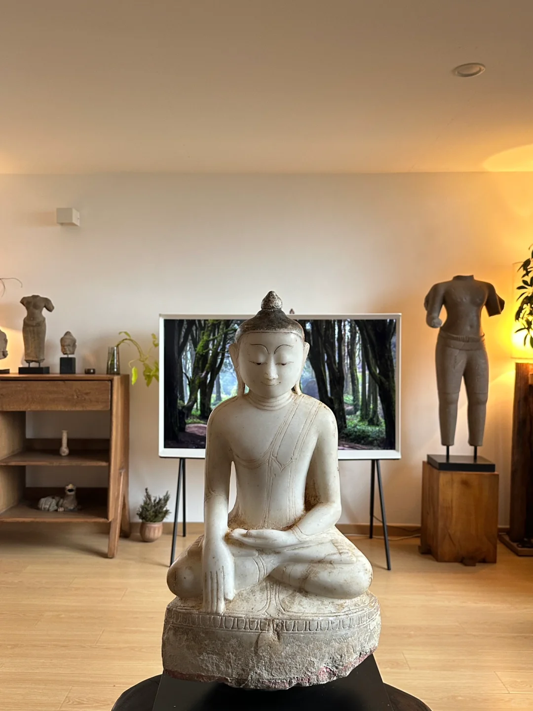 16世纪 Ava时期掸邦风格汉白玉释伽牟尼成道佛造像