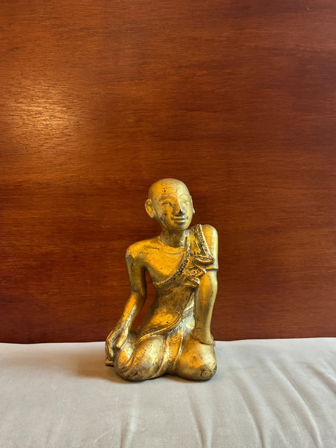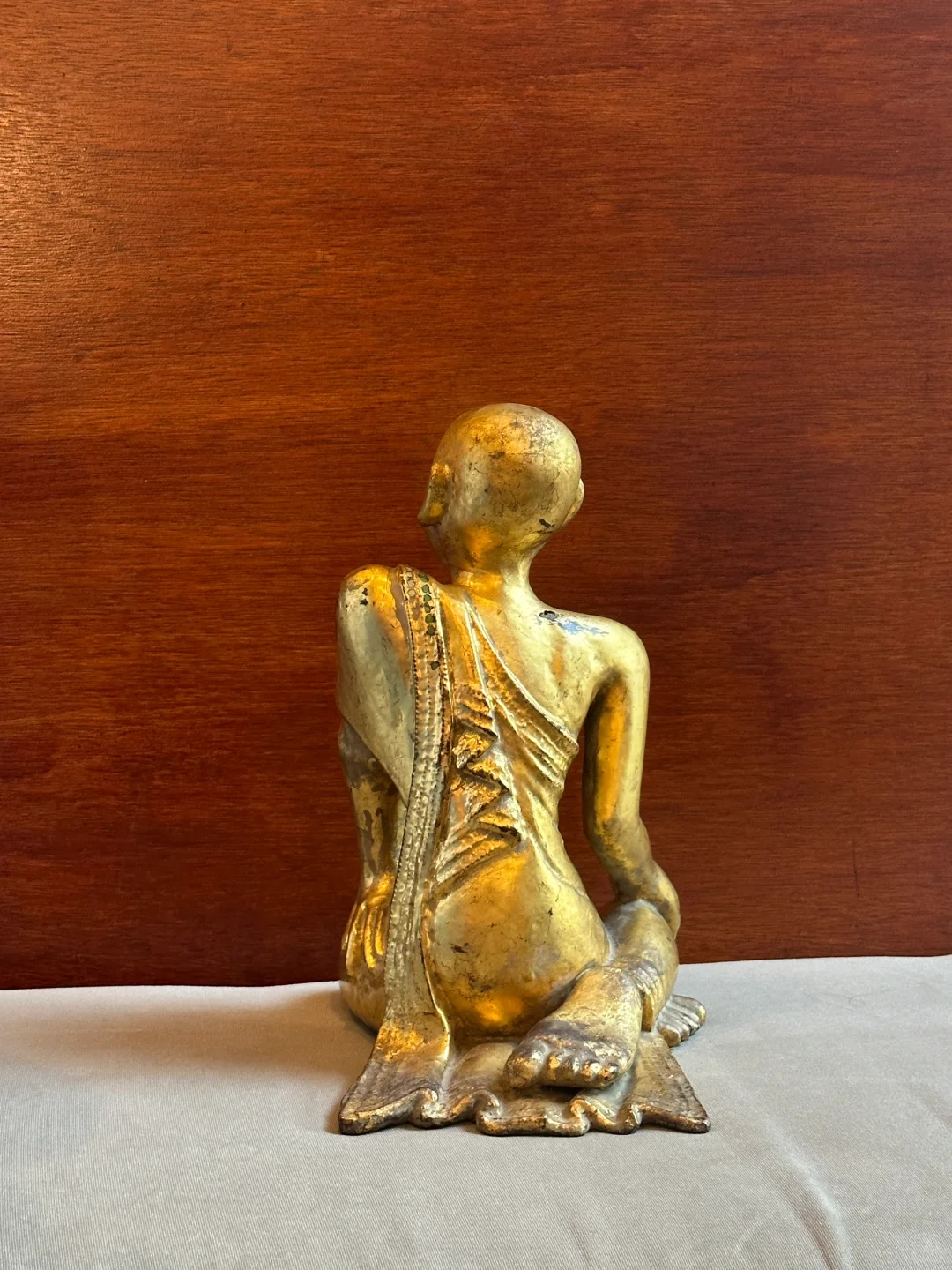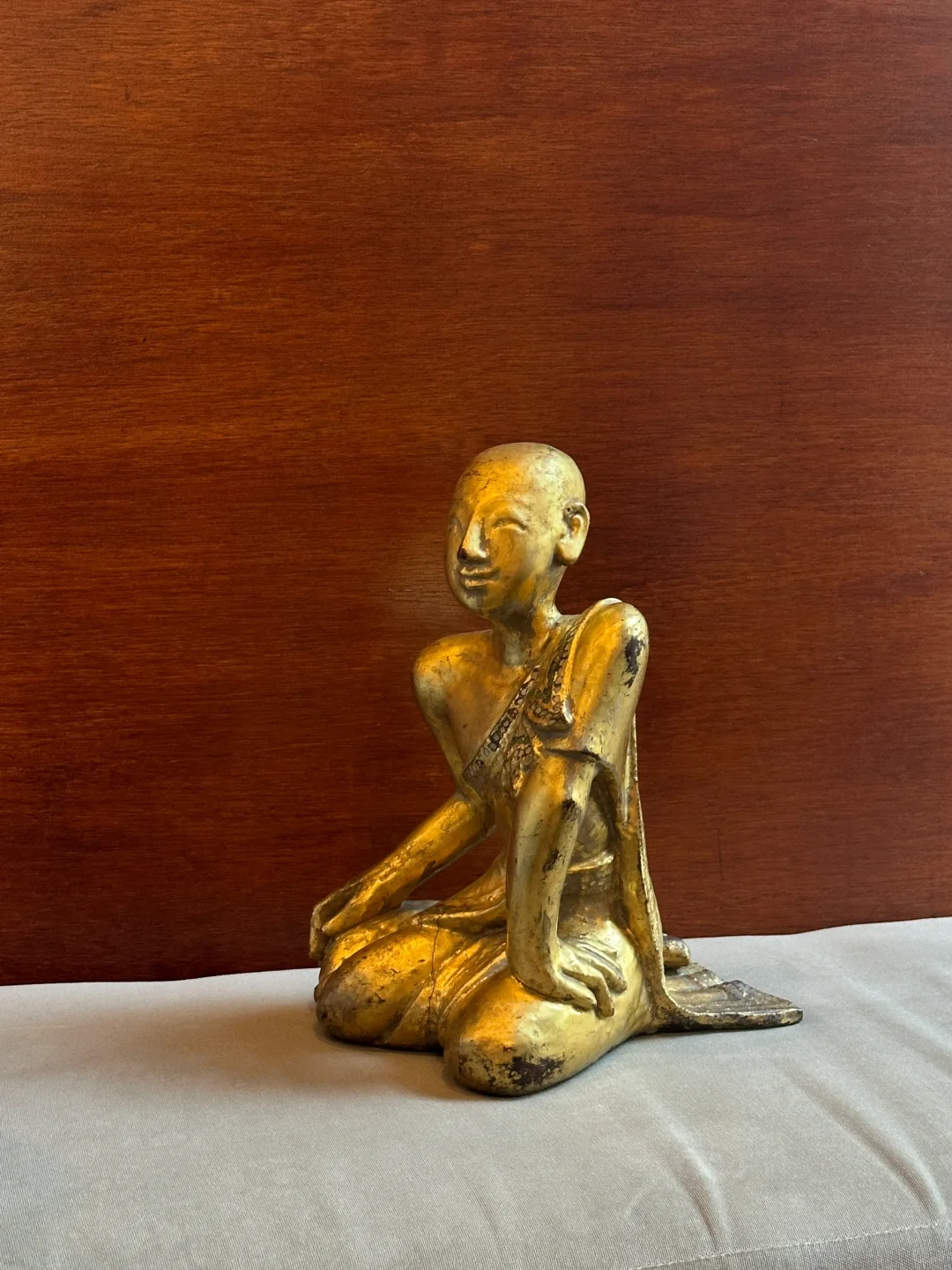 缅甸19世纪Mandalay曼德勒风格木雕漆金僧侣像