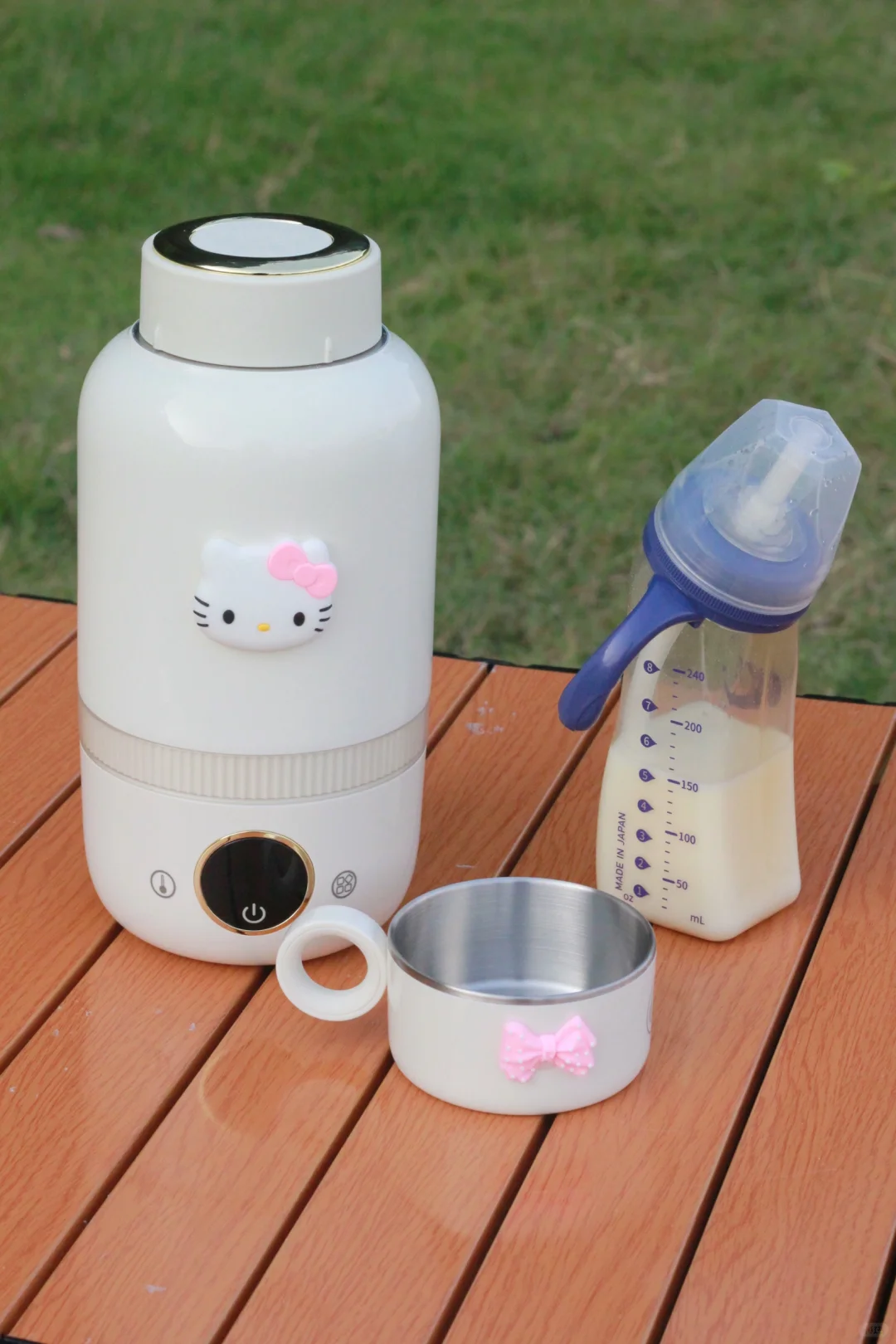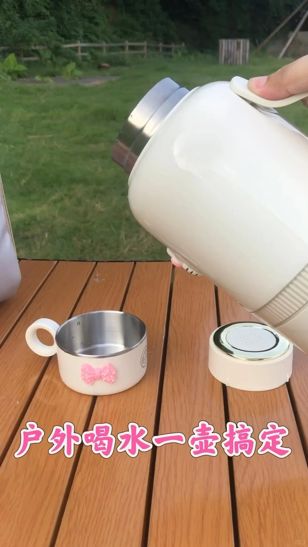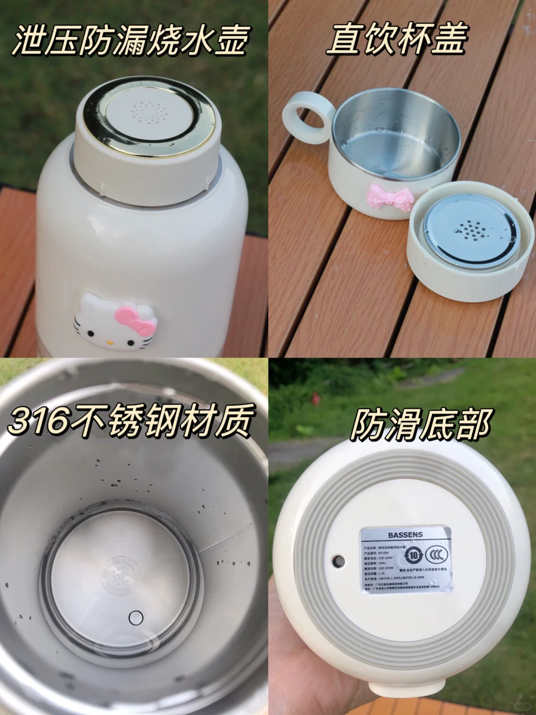 经常户外露营的都知道喝水是必备的,特别还带着孩子出去,麻烦的就是泡奶没有热水,最近看了挺多网友都在找的便携烧水壶,都说好用,就入手回来了,我买的是巴森便携烧水壶,外观挺精美的,隐藏折叠式提手,出门携带方便,保温效果也挺好,烧水速度仅需3分钟,8H长效保温,户外喝水泡奶轻松就搞定,1L大容量,316不锈钢内胆,材质安全放心,一键调奶45°C, 而且杯盖还可以当作水杯喝水,自带直饮杯,开盖即饮,现在出门都带着这个便携烧水壶,不管是出门旅行或者住酒店都挺好用,材质也安全,随时随地实现喝热水自由👍