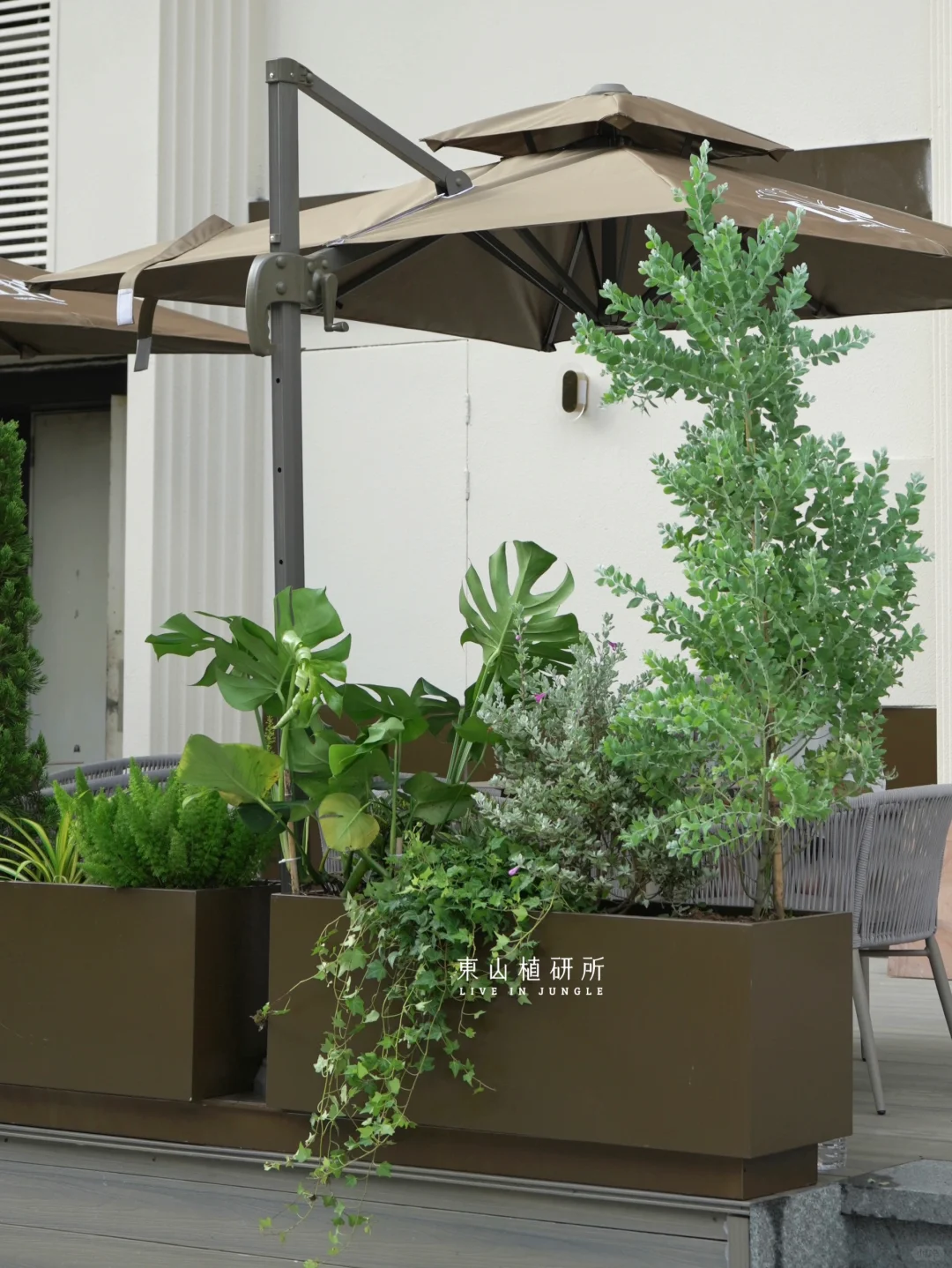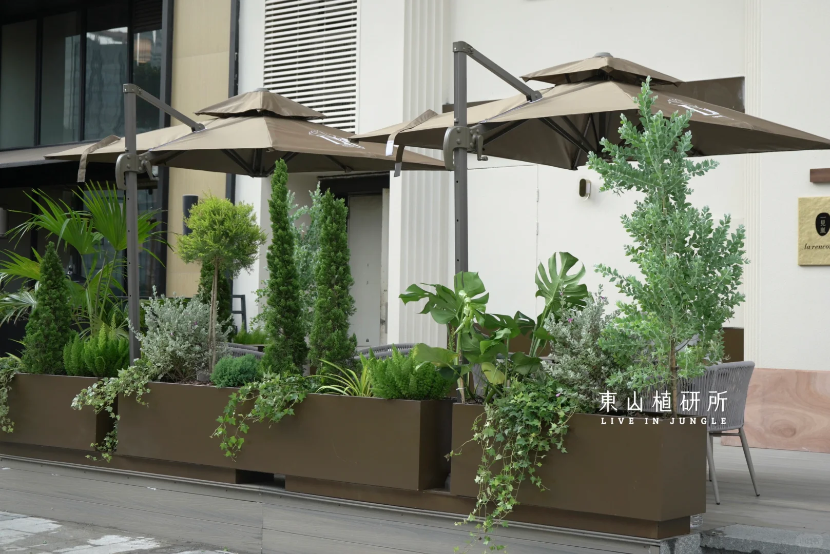 店面外摆植物花箱设计 独特的叶片和造型自带高级感 浓浓的地中海氛围 配合场地欧式建筑风格 精选耐晒的植物 用绿植花箱打造充满法式风情的外摆花园 ———