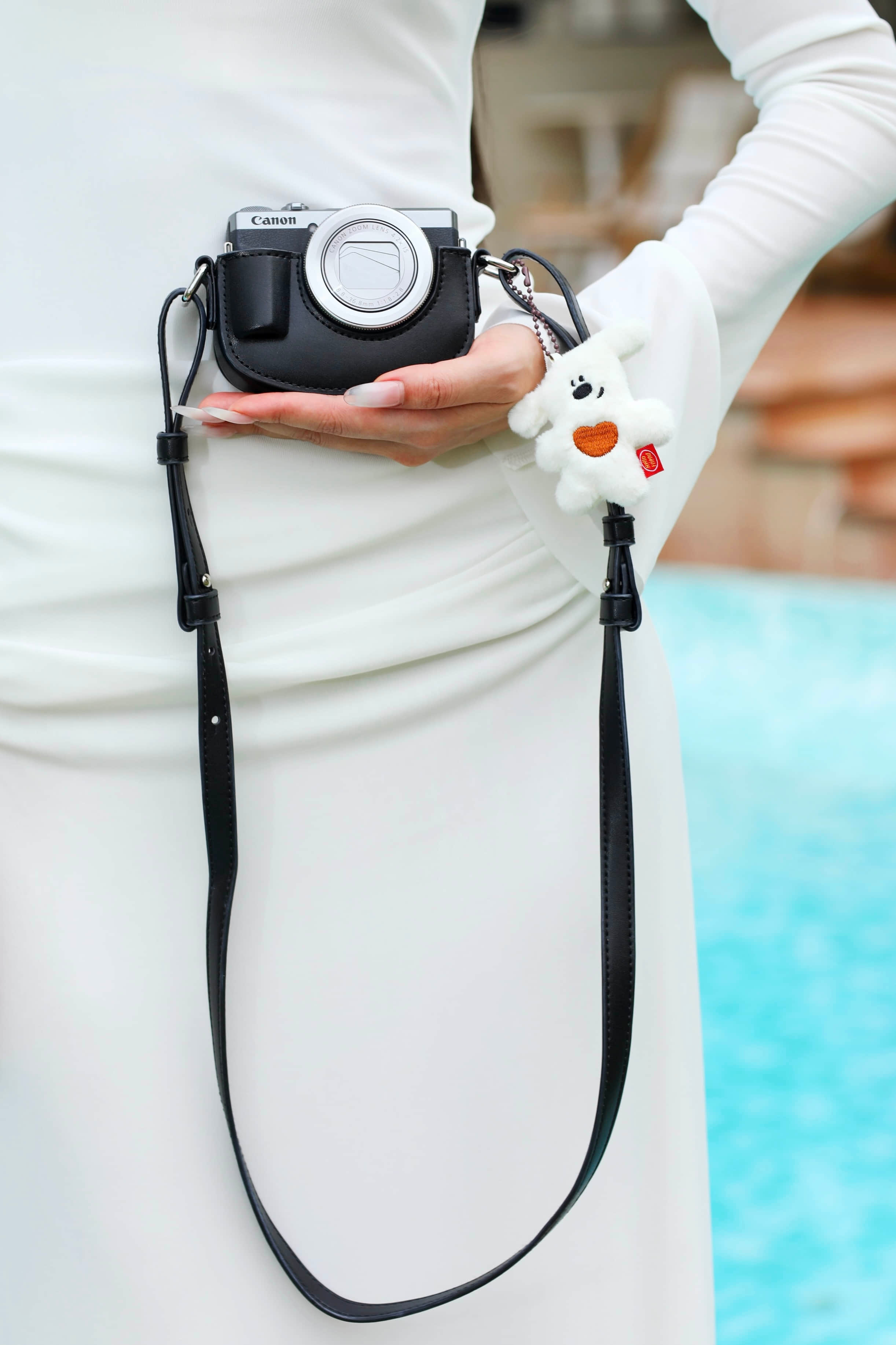 小巧轻便的佳能G7X3与线条生动的月亮包相互配合,打造出独特的佳能时尚美学