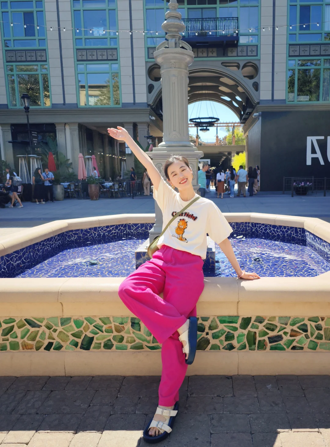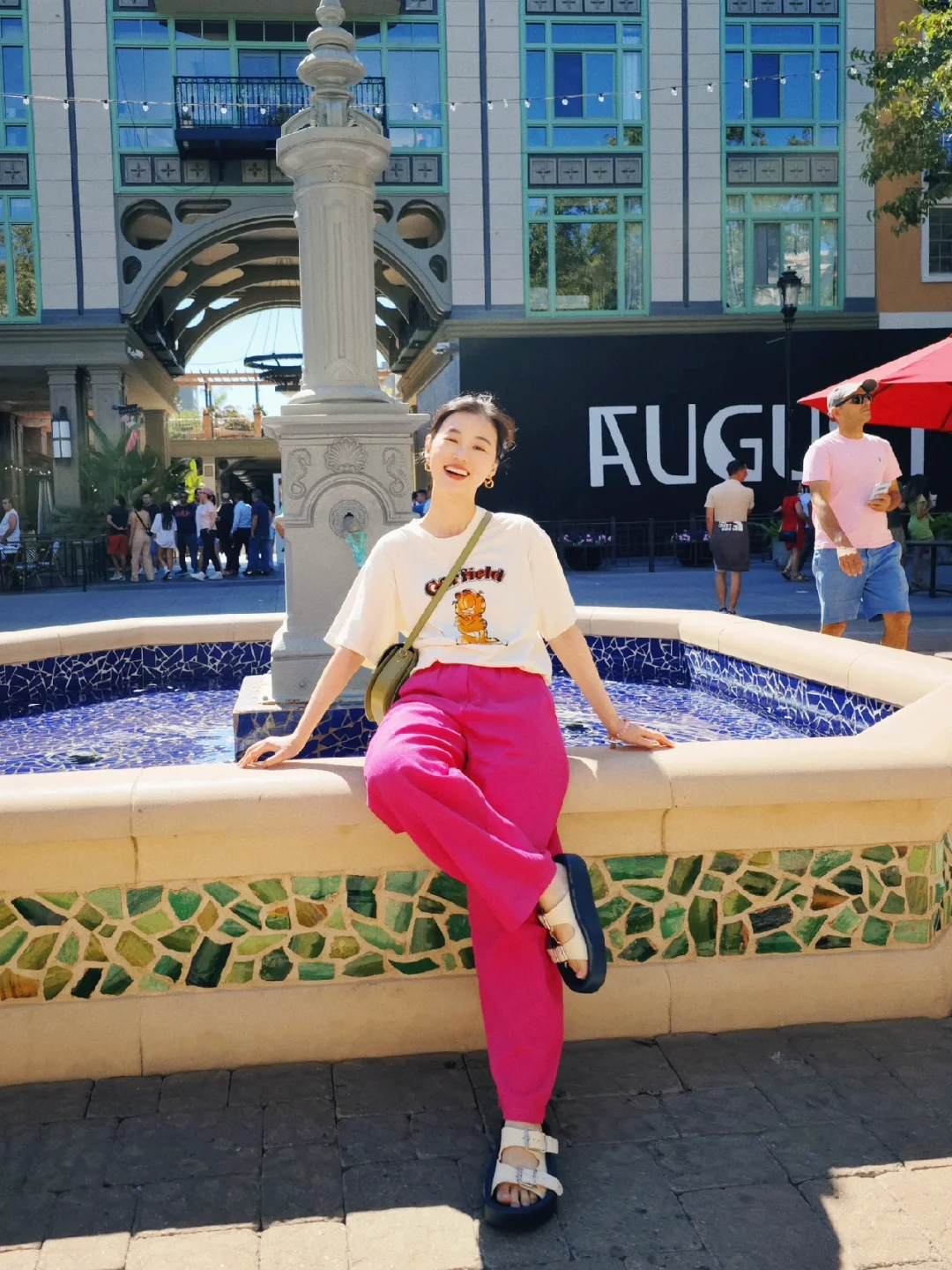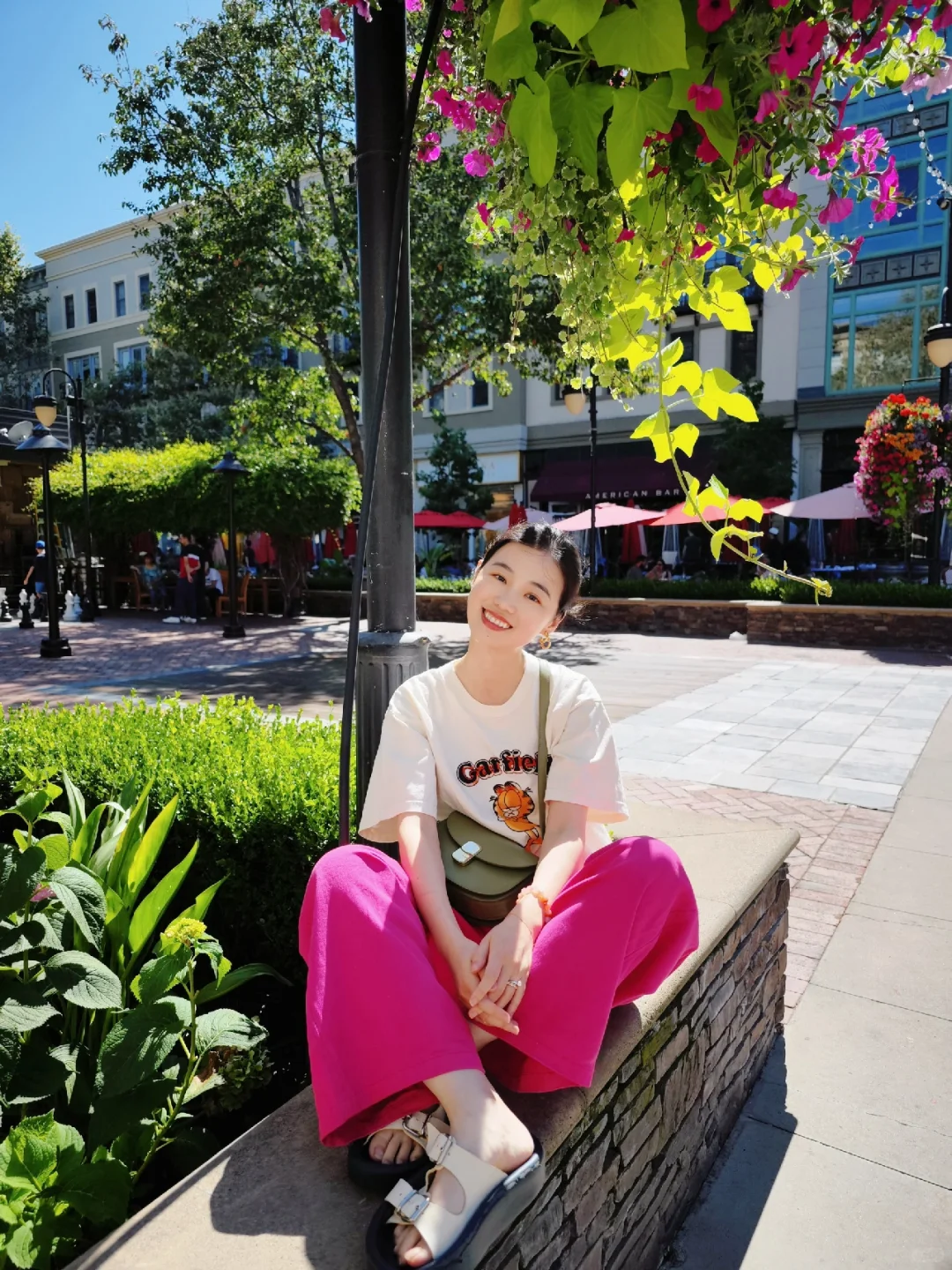 · 摄影师入手的加菲T, 可惜洗衣机过两遍,这猫易主了, 一缩水,成了我的加菲~ 最近跟这猫有缘,连逛跳蚤市场, 都能遇上一整窝~ · 和加菲T搭配的是 上次回国入的素然玫红长裤, 还是那句话, 玫红的宿命就是尽情明媚! · 也祝今夏今日皆🐟块! ·