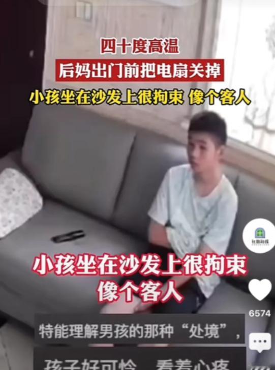 “没妈的孩子是根草!”浙江40度高温,后妈出门前把电风扇关了,小孩坐在沙发上,一句话没敢说,甚至都没敢动,直到后妈走了以后,男孩也没敢开风扇,只是用手拽着自己的衣服,来回动着,希望能凉快点,降降温。 “爸爸你不要跟阿姨吵架了,我现在就回我妈那里,你俩好好的”,乐乐(化名)把自己的爸爸拽到一边对他说到。 爸爸则是对他这不是你的问题,你没事就安心在这住,这事我来解决。 (信息来源:社旗新媒2024-07-31《四十度高温,后妈出门前把电扇关掉,小孩坐在沙发上很拘束 像个客人》) 其实话说的很好听,但是真的做起来就没这么简单了,而且乐乐宁愿自己受点委屈,也不想让爸爸为难。 乐乐的爸爸和妈妈因为感情破裂选择了离婚,而乐乐跟了妈妈,因为放暑假了在家没事,乐乐又想爸爸了,便想着去爸爸那里住几天。 他知道爸爸也结婚来有了新的家庭,乐乐去的时候还很有礼貌的和爸爸的妻子打招呼,但是这个阿姨就是一副爱搭不理的样子。 按正常情况来说虽然是后妈,但是一般人就算心里很不接受这个孩子,但是毕竟是丈夫的儿子,为了家庭和谐肯定还是会在表面上做做功夫,假装对孩子很亲。 其实刚进门见到这样的情况乐乐就有一点退缩了,他其实并不指望后妈会热情的招待自己,但是也并不希望看到如此冷漠的对待。 但是好在爸爸还是很热情的,乐乐也就把这件事情抛在了脑后,谁知道接下来的事情,完全就在乐乐的意料之外。 一次在饭桌上吃饭的时候,爸爸很照顾自己给他加了一大块的鱼,乐乐很开心的将他吃完,然后把鱼刺吐在了桌子上。 谁知道阿姨接下来的举动让他傻眼了,阿姨直接将乐乐面前的菜全部挪远,爸爸看到这一幕则是护着乐乐,给他夹了满满一碗菜。 后来爸爸去上班了,乐乐和阿姨还有她的孩子在家,当时外边的温度达到将近40度,家里如果不开空调根本没办法待。 但是乐乐住的小房间的空调,在他刚到这个家的第一天就被阿姨给拿走了,他在房间热的待不下去,便去客厅吹风扇。 这个时候阿姨和她的孩子正在卧室,美美的吹着空调玩着手机,但是乐乐在客厅有个风扇还不算可怜。 可是他还没吹多久,阿姨就从房间里出来,看到他在吹风扇,直接上前把风扇给关了,说浪费电。 乐乐坐在沙发上也不敢吭声,在阿姨走后他也没敢去开风扇,自己一个人试图来回扇衣服造出点风,而且像这样的事情乐乐也没有告诉爸爸。 后来阿姨经常会因为他给爸爸吵架,甚至提出离婚,爸爸被气得拿刀砍了沙发,乐乐把这些情况看在眼里,他不希望因为自己爸爸为难,所以选择了离开。 后来网友们都说这样还不离婚留着干嘛,都说这女子怎么这么大的恶意,孩子是无辜的,怎么能那孩子出气。 对于这样的事情各位有什么想说的呢?