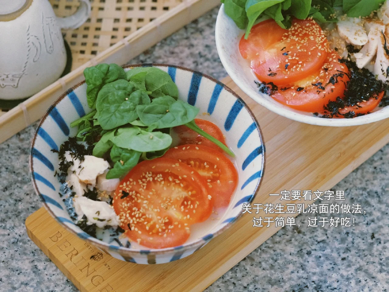 加入喜欢配菜,最后撒些白芝麻+花生碎。