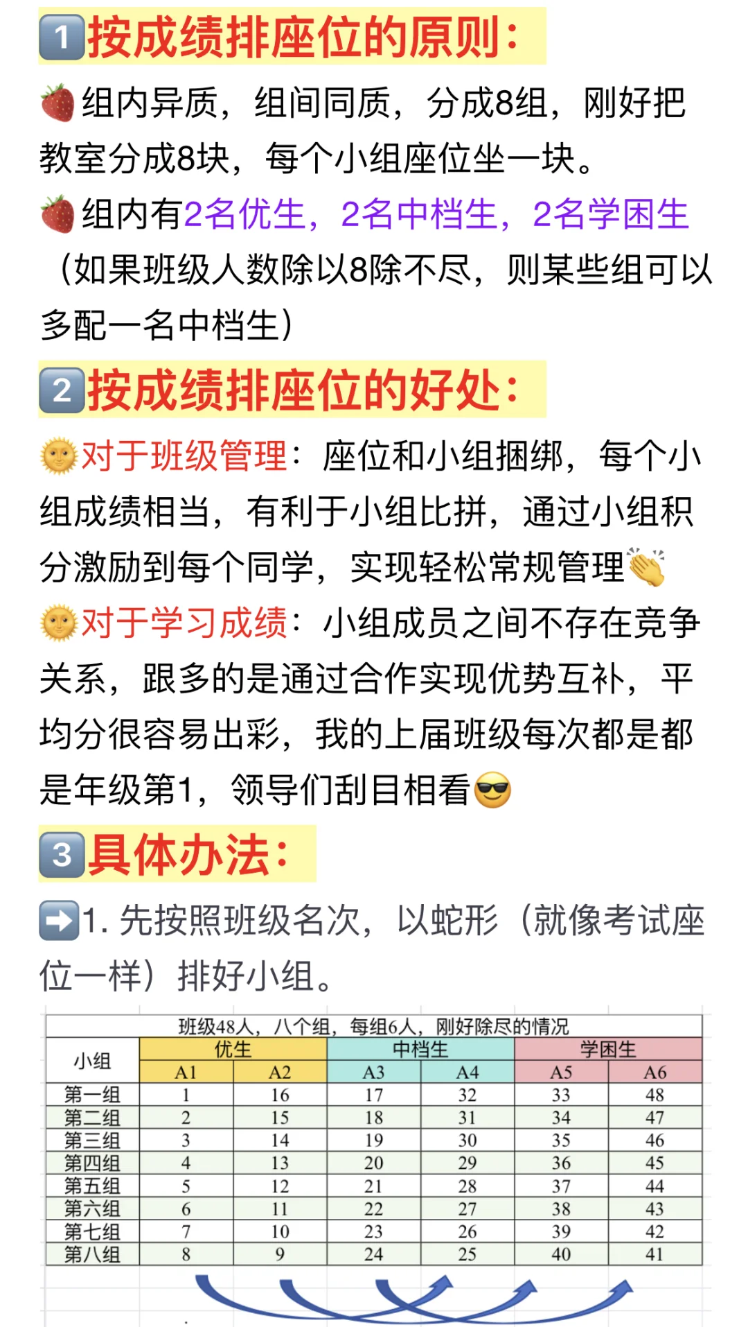 ➡️1. 先按照班级名次,以蛇形(就像考试座位一样)排好小组。