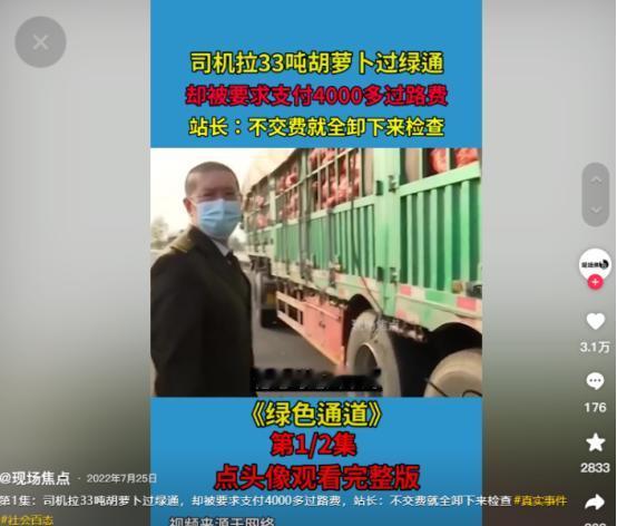 “看人下菜碟?”2022年石家庄,一货车司机,拉了33吨胡萝卜过绿通,被要求交4700元过路费,收费站站员给出的理由:胡萝卜蔫了,不是新鲜农产品!要想自证清白,必须全部卸货! “我这胡萝卜是看着她们刚扒出来的,上边还带着泥呢,在路上我也没敢耽误,怎么就不新鲜了”,李师傅焦急的对着收费站的工作人员说到。 没想到的是工作人员并没有听李师傅的解释,而是坚持自己的想法,说李师傅这就是不新鲜了,所以不能走绿色通道。 (信息来源:现场焦点 2022-07-25司机拉33吨胡萝卜过绿通,却被要求支付4000多过路费,站长:不交费就全卸下来检查) 李师傅想了如果要交过路费的话得交4700元,本来这一趟就不挣什么钱,如果要交过路费的话自己还得倒贴钱。 想当初领导给李师傅说,有一批胡萝卜的目的地刚好是他的家乡,问他要不要接这个单,李师傅听到后二话不说的直接答应了。 因为他开大货车本来回家的次数就少之又少,距离上次回家已经过去了很长时间,这次好不容易有机会可以回家转一圈,他心里别提多激动了。 当天早上天还没亮,他就开着车去装胡萝卜,他看着刚从地里扒出来的新鲜的胡萝卜,自己都忍不住想要咬上一口。 他的车上一共是拉了33吨的胡萝卜,在路上的时候,李师傅都不敢急刹,而且在转弯的时候也保持着尽量不产生剧烈的晃动。 一路上除了吃饭休息根本不敢进行长时间的停留,因为胡萝卜也算是一种有保质期的东西,所以李师傅要赶在它最新鲜的时候,将东西送到买家的手里。 李师傅看着离收费站越来越近,他的心情也越来越激动,因为这就意味这自己离家的地方越来越近。 本来一切都很顺利,没想到到收费站这里竟然出了岔子,收费站的工作人员告诉他,说他拉的胡萝卜不新鲜了,不能走绿色通道,所以要交4700元的过路费。 李师傅没想到自己一路上都是这么过来了,马上就要到达地方了竟然被扣下,说胡萝卜不新鲜不给放行。 尽管他再怎么给工作人员解释,工作人员还是说要不交钱,要不就将一车的胡萝卜全部卸下来检查。 李师傅肯定是不可能交钱的,因为交完过路费,自己不但白跑了一圈不赚钱,还得搭上油钱,所以李师傅只能费点事,将胡萝卜全都卸下车,让他们检查。 谁知道废了很长时间,让工作人员检查了一下发现,李师傅拉的胡萝卜基本上都是新鲜的。 这时候的工作人员才改口了,说李师傅可以走绿色通道,听到这句话的时候,李师傅委屈的哭了起来。 他开着大货车跑了4天,路上一点都不敢耽误,现在竟然让人给故意为难了,虽然李师傅心里很不好受,但是他还是默默收拾着,选择先将胡萝卜送到买家手里。 这件事在网上传开后,有的网友表示自己也遇到过这样不公平的行为,这些人总是看人下菜碟。 网友们纷纷表示,她们就是欺负老实人,想要从中索取好处,就不应该惯着她们。 对于这样的事情各位有什么想说的吗?