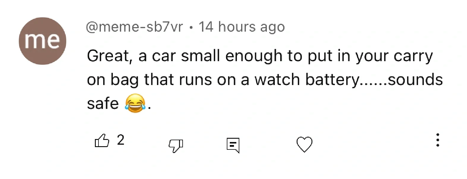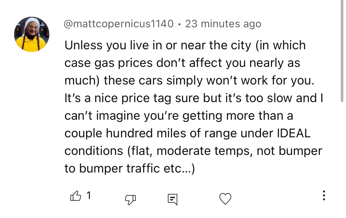 [合十R]另一边,这条视频下方可以找到一些来自新西兰和澳大利亚的评论,几乎都是:“很欢迎这类车来”,“市场上很需要这类小型EV”等等
