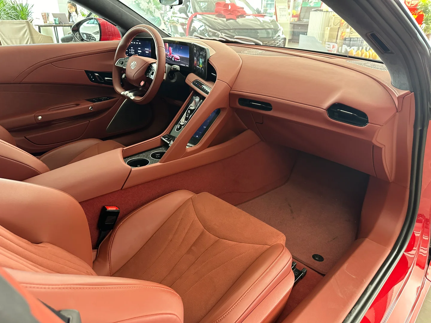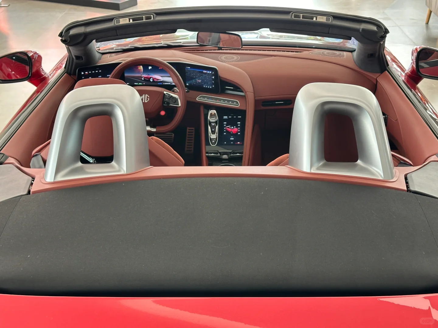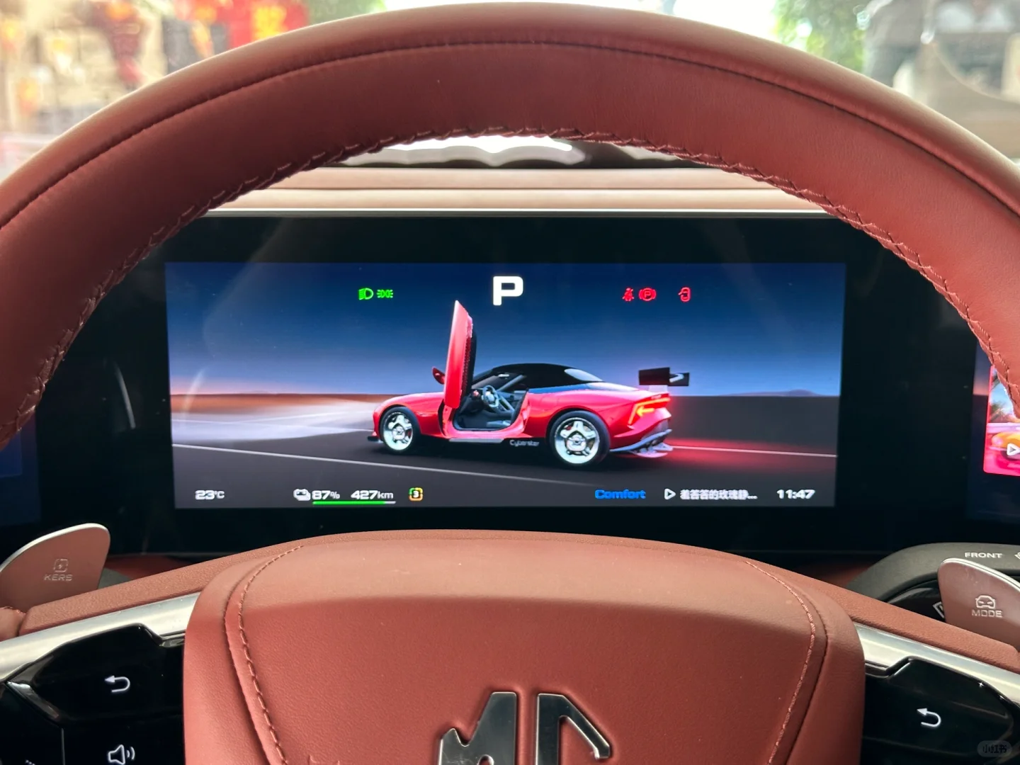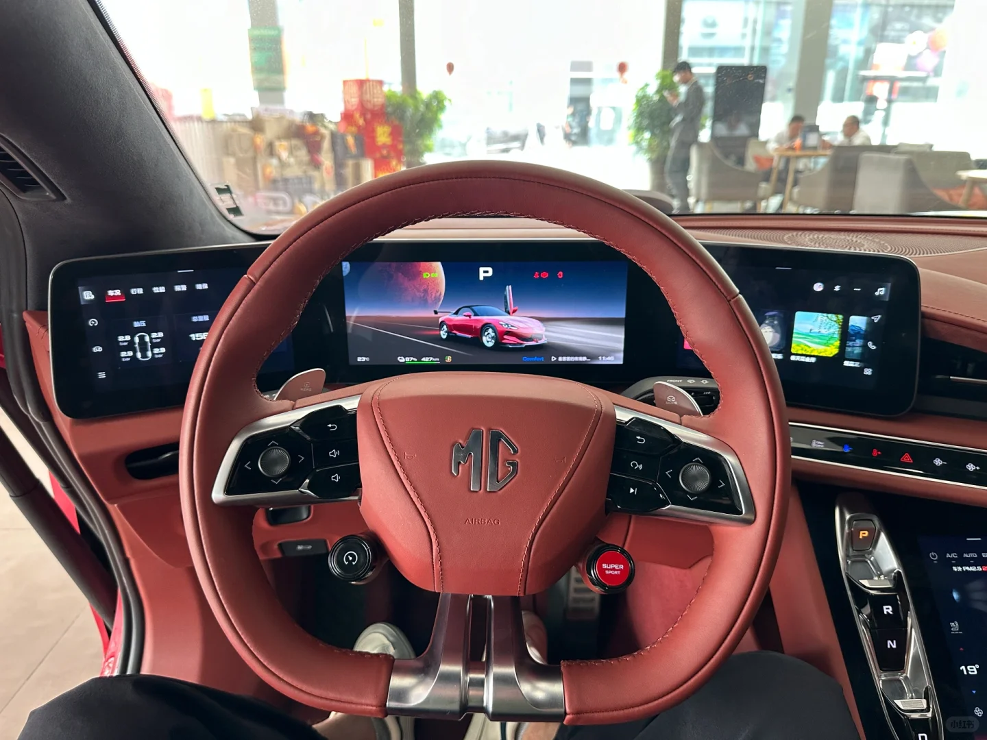 用料都算高级,至少比现阶段任何MG都好;上半部分三块屏幕挺有意思的,仪表盘没有太多可以设置的但是左右侧的屏幕可以分别设置车辆和导航等等,方向盘的左右按键都可以操作各自屏幕,这点很赞!不过系统的顺滑度不及其他国产新能源那么厉害