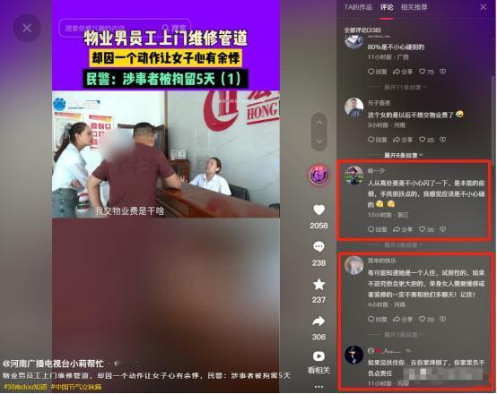 闹大了!河南,一女子家的下水管道堵塞,物业派男修理工上门疏通,可是在维修过后,男修理工竟然趁女子不备对其“袭胸”猥亵!女子第一时间并没有报警,而是找物业公司投诉,物业也表示会调查,结果男修理工第二天依旧正常上班,把女子气的直接报警,结果男修理工悲催了!网友:本来事儿不大,物业应该第一时间出来协调一下。 “你干什么呢?!”女子一脸惊恐地看着面前的男维修工,一时间被他的举动吓得有些不知所措,而男修理工还站在那里笑,这让女子毛骨悚然。 究竟是不小心还是故意的,男修理工的行为是否算得上是违法行为,最后男修理工的处理结果又是怎样的,物业公司又会作何表示。 (主要信源:河南广播电视台小莉帮忙—2024.08.04《物业男员工上门维修管道,却因一个动作让女子心有余悸,民警.....》) 家住河南某小区的小王,平日里独自一个人居住,这天因为家下水道被堵了,她一个人处理不了这样的情况,随后便拨通了小区物业的电话,希望他们可以派一个修理工。 物业表示修理工稍后就会过去,并记录了小王家的门牌号。 不一会,李师傅便带着工具来到了小王家里,经过检查后发现不是什么大问题,不一会便修好了,在测试完不会在堵塞之后,李师傅提出了一个要求。 应公司要求,需要拍一张照片,他需要小王帮他一下,拍个照片不是什么难事,小王便欣然同意了,招牌拍完之后,小王正要把手机抵还给李师傅,意外发生了。 李师傅脚下一个趔趄,朝着小王冲了过来,不知是故意的还是怎样,他的手冲着小王的胸口伸了过来,小王还没反应过来,只是感觉胸口被人捏了一下。 接着便出现了开头的一幕,小王因为是独自一人在家,考虑到安全问题,并没有与李师傅过多争执,待到李师傅走后,小王立刻拨打了物业的电话进行投诉。 物业在得知这情况之后,先是安抚小王的情绪,并且表示会尽快查此事,但是一天过去后,小王发现李师傅还在正常上班,这让她觉得物业是在敷衍她,当即便选择报警。 派出所的工作人员在调查之后,认为小王所说情况属实,立即对李师傅处以五天拘留的处罚,但是物业在这件事情中始终保持沉默,这让小王有些愤怒。 李师傅毕竟是物业公司的人,出了这样的事情,人被拘留就完了?物业方面没有一点表示?而小王只不过是想要一个道歉而已。 但是物业公司称,李师傅的所作所为完全是个人行为,与物业没有任何关系,双方经过拉扯,物业始终不愿意道歉,小王也是仅仅只有这一个诉求。 没有办法的小王只好求助媒体,在镜头下的物业工作人员终于肯低下头,向小王诚恳的道歉,并且还表示在之后会严格对物业员工进行严格的管理培训。 事情在这里告一段落,网友们对这件事情也是感到无比的唏嘘,明明是一件小事情,物业只要出面道个歉,这件事情就算完了,结果闹到这样的地步,实在是有些不值得。