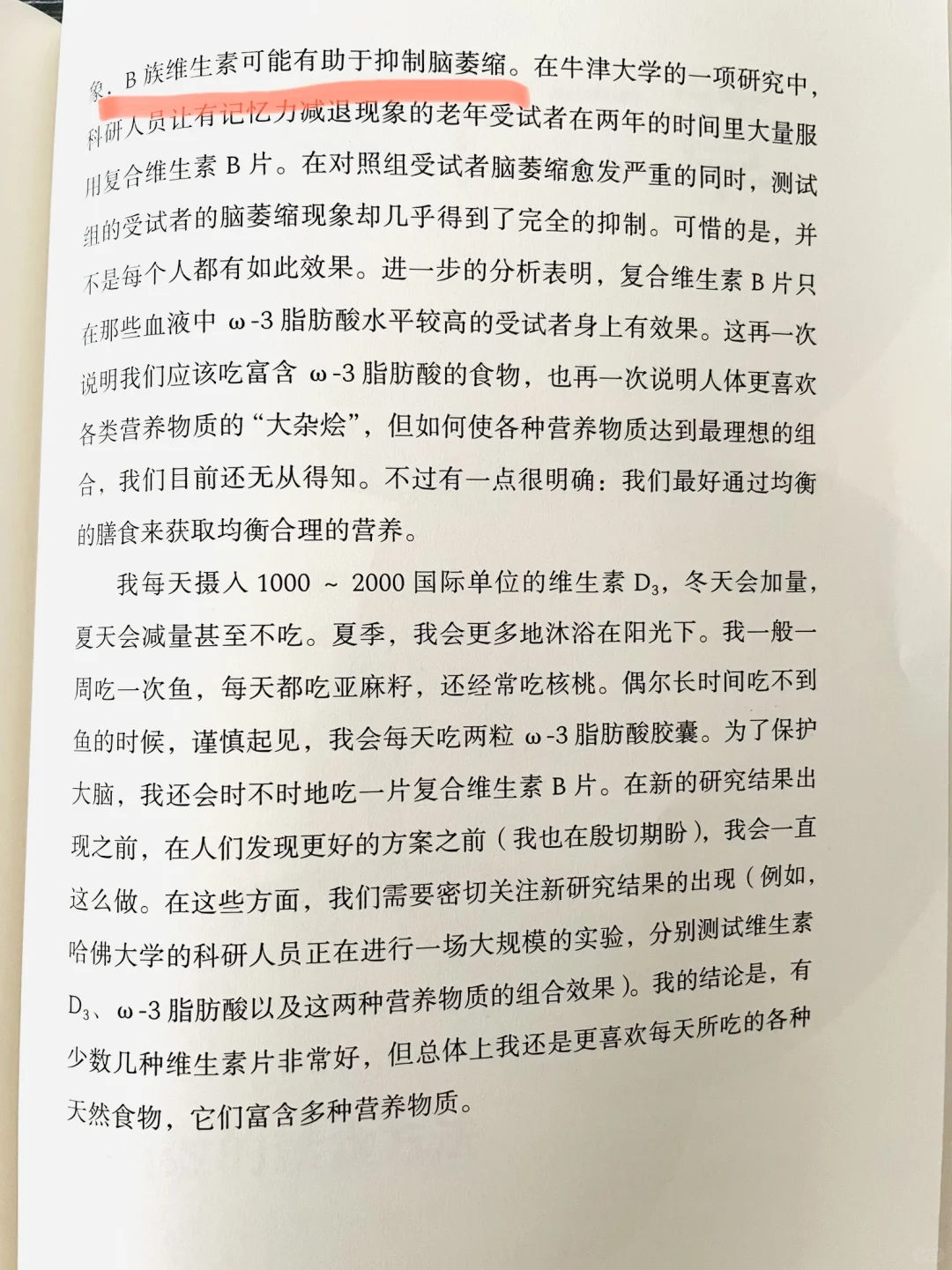 [向右R]别吃维生素片。(这句话不是教条。但是有一个最重要的例外——维生素D3,每天可以补充1000~2000国际单位。另外,ω-3脂肪酸胶囊和复合维生素B族维生素片也可以吃。素食者还必须服用维生素B12补充剂。)