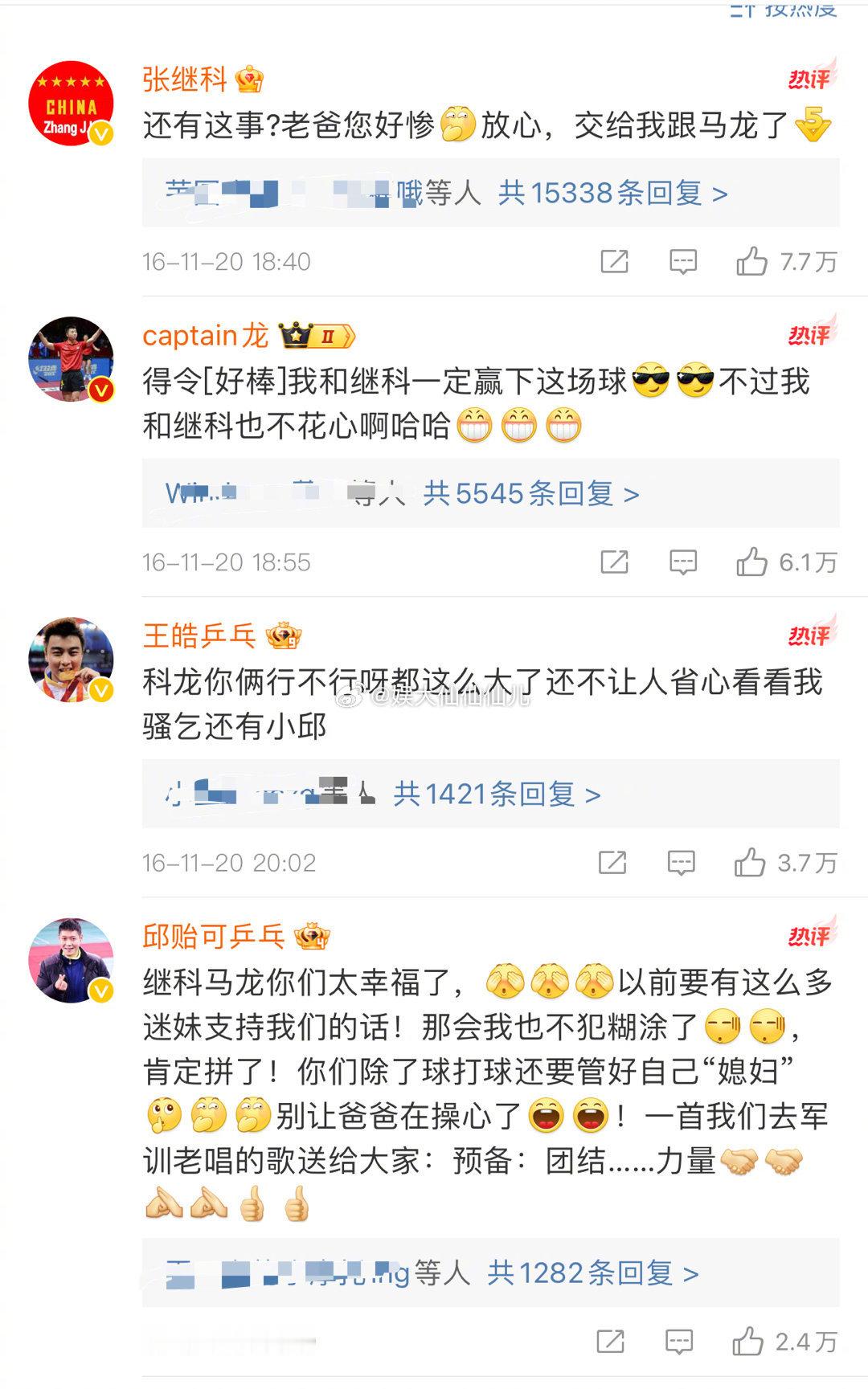 许昕回复了自己和马龙的cpf产出劳斯 人民艺术家网速好快啊[doge]哥是不是什