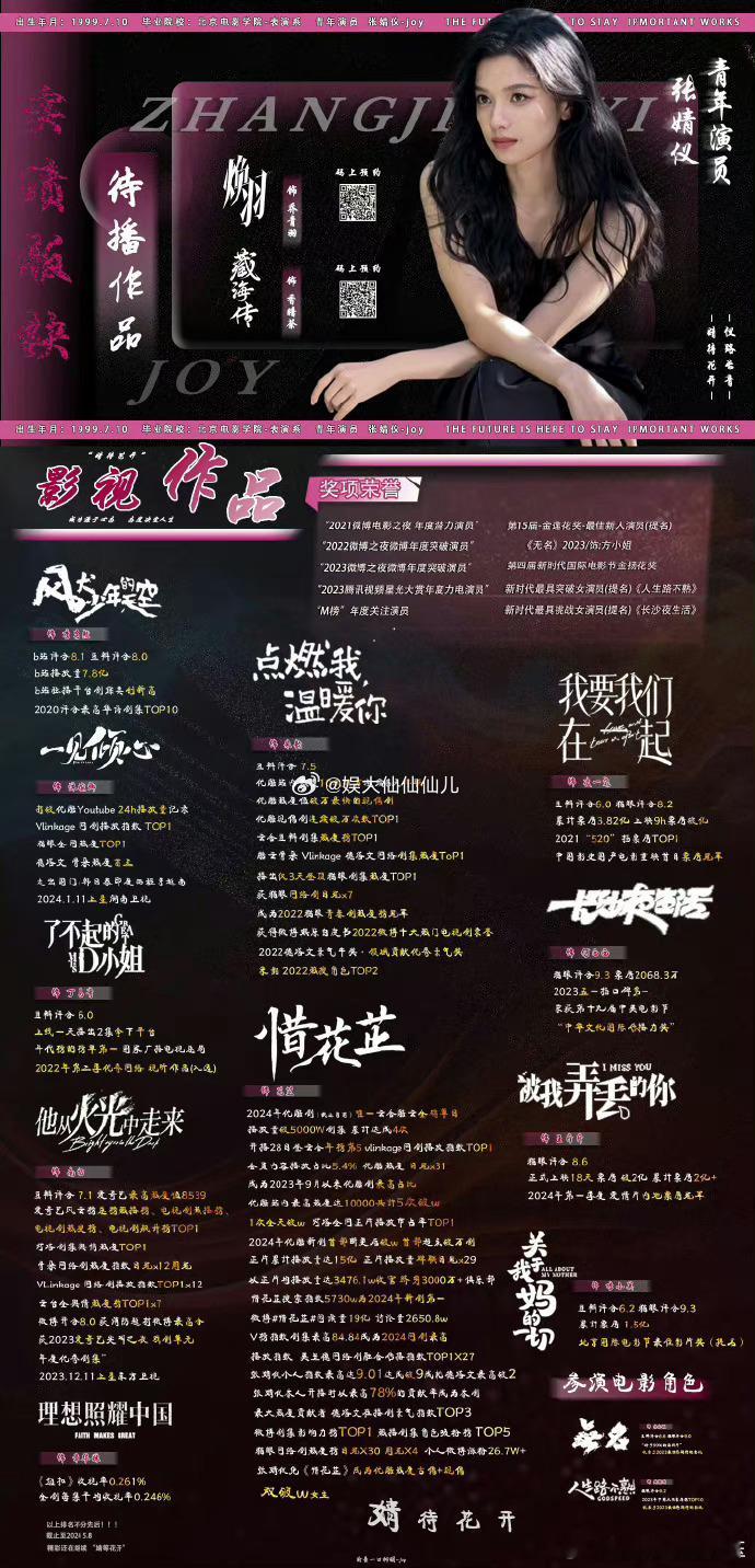 虞书欣、赵露思、张婧仪、周也几位95花实绩图盘点 你们觉得谁是实至名归的top?