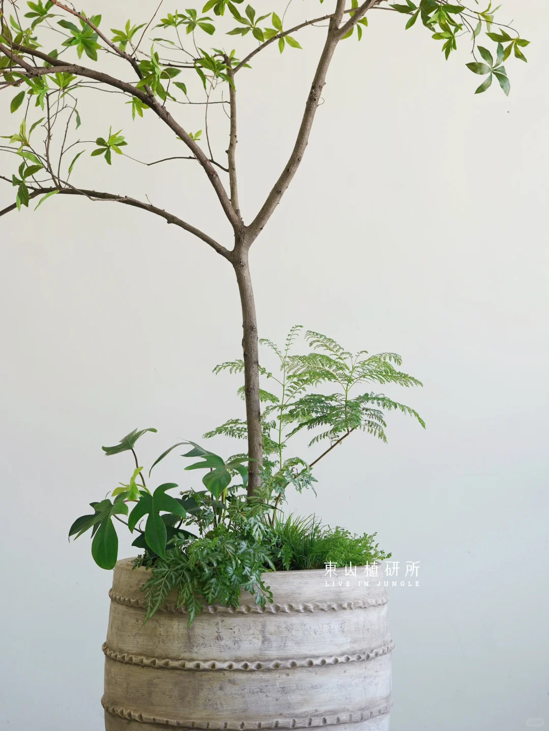 仿真绿植组盆设计 飞羽般层叠的轻盈小叶 在枝干舒展 绿意葱茏 ——————