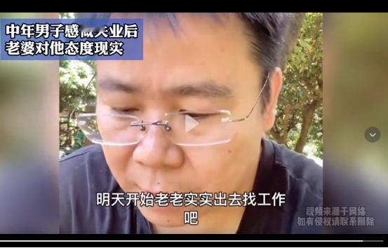 “心酸,男人中年失业不如狗!”深圳,38 岁男子感慨失业半个月后,老婆对他的态度太现实了!男子:“我只是失业了,我又不是废了!挣钱的时候就对我好,挣不到钱的时候就懒得搭理我!哎,没办法,明天开始老老实实出去找工作。” 王先生(化名)的公司开始了大裁员,王先生也没有逃过这一劫,38岁的他遭遇了职场滑铁卢,一下子就失业了。 被裁员的第一天回到家,王先生还没敢跟自己的妻子说这件事情,害怕妻子担心所以自己默默的承受。 (信息来源:荆门晚报 2024-07-20 中年男子感慨失业后,老婆对他态度现实) 后来过了几天实在没办法了,就找了个机会和自己的妻子坦白了,说自己没有了工作,本以为会得到妻子的责怪或者安慰,没想到妻子额外的安静,什么也没说就回卧室了。 但是接下来真正的让王先生感受到了,失业的男人真的什么都不是,跟妻子坦白后的第二天,王先生就觉得妻子总是会表现出一副,对自己爱搭不理的样子。 王先生还说自己当时上班的时候,每天妻子都会问自己晚上下班回家想要吃什么,然后提前去买菜,到时候做好等着自己下班回家吃。 但是现在也不问自己想吃什么,而是冰箱里有什么吃什么,甚至有些时候是吃孩子剩下的东西,这让王先生觉得自己失个业跟做了什么大恶事一样。 但是其实站在妻子的角度来看,可能妻子只是觉得现在家里没有了收入来源,一些能省的地方尽量省一些。 现在的生活肯定不能像以前一样过的滋润了,一分钱可能要掰开花,所以才有什么吃什么,她也知道丈夫失业自己肯定也很着急,所以不便多说什么。 但是王先生还表示时间一长,妻子就开始动不动的朝自己发脾气,自己挣钱的时候,对自己的态度既体贴又温柔的,现在挣不到钱了就开始表现出不耐烦了。 有时候对于中年男子来说确实是挺无奈的,毕竟一家老小都等着他挣钱养活呢,如果工作稳定还好,但是要是工作不稳定的话,随时就会面临失业确实是让人头疼的事。 他们身上的压力只会多不会少,尽管自己心里在觉得无奈,还是得调整好状态重新开始出发找工作。 王先生就说失业的这半个月自己真的活得不如狗,他说自己只是失业了,又不是废了,但是也没办法,事实就是着,能做的就是调整好自己,继续开始找工作,开始新的旅程。 有网友说到失业了不仅妻子看不起自己,连自己的爹妈都得骂你,尤其是夫妻双方都没有工作的时候,整个家里都会陷入一种莫名的焦虑。 而且现在几乎每家每户都背着房贷车贷,一旦失业根本就没有钱去偿还贷款,生活就成了问题,这些无形中的压力都会让人崩溃的。 对于这样的事情各位有什么想说的吗?