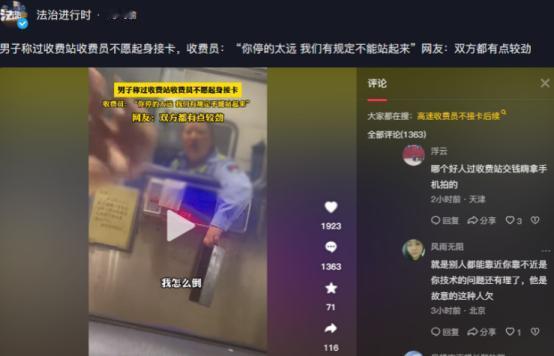 离谱!8月6日上海,男子经过高速收费站时,因车子离收费窗口太远,就让女收费员站起来接卡,没想到收费员却说:“我们有规定不能站起来,你倒一下不就好了?”男子:“后面有车子我怎么倒?”然而网友却表示:我觉得司机的责任大,故意的! 本来只需要司机往后退一点就能够很好解决的事情,却硬生生的上演了一场大战,甚至司机还用手机拍下来放到了网上,渴望得到关注。 当时这位司机在路过收费站的时候,车停的离窗口有点远了,所以他向收费员递卡的时候,收费员尽管伸长了胳膊也够不着。 (信息来源:法治进行时2024-08-07 《男子称过收费站女收费员不愿起身接卡,女收费员:“你停的太远 我们有规定不能站起来”网友:双方都有点较劲》) 因为他们有规定上班的过程中全程不能站起来,所以收费员对着司机说,希望司机能将车子往后退一步就可以够到了,但是司机死活不乐意。 而且还拿出手机开始拍摄,还嘴硬的说收费员站起来接卡不就行了,怎么那么多事,还认为这根本就不是规定,而是收费员为了偷懒而找的借口罢了。 这位司机甚至说出来很多难听的话,收费员在试图和他沟通无果后,便找了一个长方形的盒子,想要让司机将卡放在盒子上。 但是没想到司机竟然直接将卡往盒子上一扔,但是这个举动也让卡直接掉在了地上,这时候司机就情绪不稳定的说起了脏话。 收费员见状直接把窗关了不再和这位司机争吵,后来工作人员赶到,了解了事情的整个过程,她对司机说到他们确实有规定不能站起来,烟味要监控全程录像。 还表示司机如果把车往后挪一点的话,事情很快就能解决的,没想到司机说后面有车怎么挪,但其实后面的车跟他的还有很长一段的距离,后退一点根本不可能撞到。 但就是因为这司机自己的想法,导致后面的车都排起了长长的队,后来司机竟然还有脸将自己拍的事情传到网上。 他可能是觉得自己发的视频,自己就有理,网友们都会向着他,但是结果却没有按照他所想的发展。 网友们纷纷表示自己的停车技术不好,还将气有意去意的撒在收费员的身上,甚至还拍成视频发出来,想要引起网友们对收费员的抨击。 但是现在好多人并不只看视频里的一部分,而是根据事情发表自己的看法,大家都表示并不是所有的发布者都有理,甚至这些人的想法,就是想用这种方法来报复真正的受害者。 所以不要试图想要用舆论来打压一个人,对于这样的事情各位有什么想说的吗?